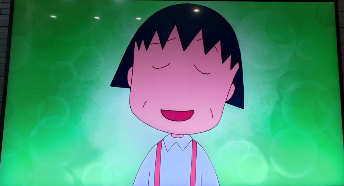 #ちびまる子ちゃん 野口さんの石で笑ってるまる子の提供バック。