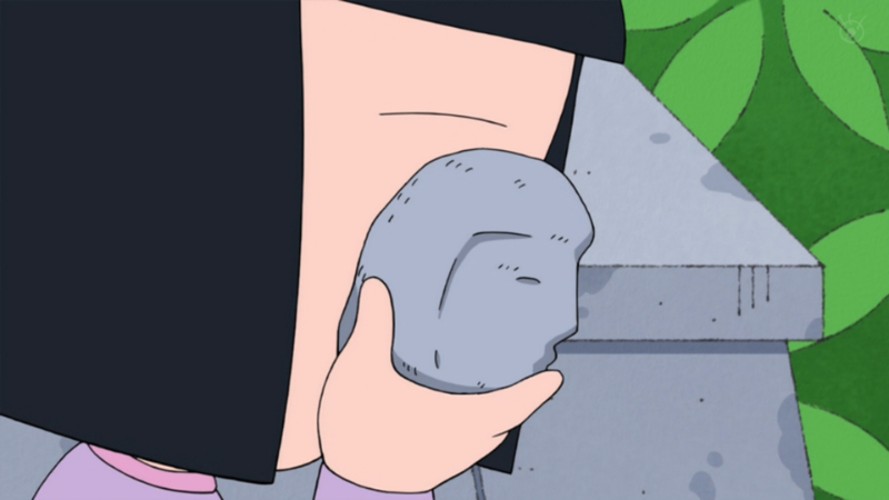野口さんが野口さん石を見せて、まる子が笑い、山根にウケてない提供バック。 #ちびまる子ちゃん