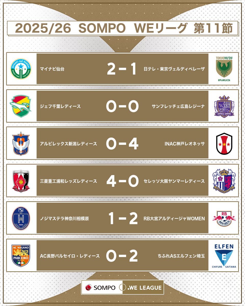#今日の女子サッカー #女子サッカー 🇯🇵2025/26 #SOMPO #WEリーグ 第11節 #AC長野パルセイロ・レディース 0-2 #ちふれASエルフェン埼玉 (前半0-1/後半0-1) 得点 【EL埼玉】 #樋口梨花(29分) #田中結衣(73分) 試合詳細・ハイライト weleague.jp/matches/202510… #weleague #AC長野EL埼玉