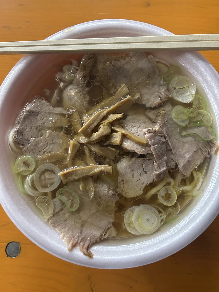 #ちゃんのれん組合 @#東京ラーメンフェスタ 中華そば 所謂ちゃん系の出店です。 無料トッピングには大蒜が用意されておりました。😂 雨の日なんでお盆まで😊 味はちゃん系そのまんま‼️😋 叉焼多すぎてほぼチャーシュー麺状態‼️😂👍 ボリューム💯 ご馳走様でした。🙏 #乃木坂ラヲタ部 pic.x.com/Qnjec6LBkF