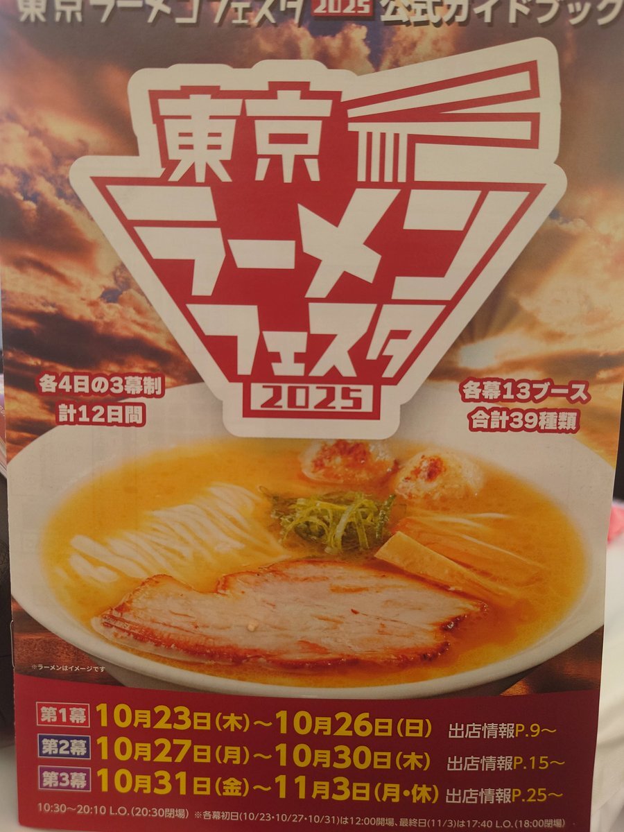 本日第一幕の最終日 『東京ラーメンフェスタ2025』 期間中ずっと雨降りの寒空ですが我々がやることは変わりません。会場でイチから仕込んでアツアツのラーメンを作り続けます。 本日10:30〜20:10まで。 おすすめルートは恵比寿駅前からバスで1本 ! #ラーメンフェスタ #ちゃんのれん組合 pic.x.com/LVFBgWMOmQ