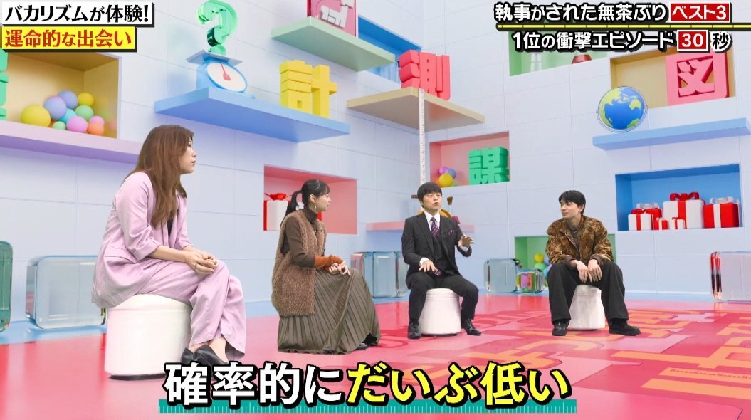 📺今夜8時54分 #ちょっとバカりハカってみた 👮「犯人はこの中にいる」…現実でもある!? 🍞食パンをくわえて曲がり角で…ぶつかる確率って!? 💥日本一ぶつかりやすい曲がり角も判明(他) 今夜は…ドラマあるある調べたら衝撃事実SP👀✨ #バカリズム #影山優佳 #髙地優吾(#SixTONES) #ヒコロヒー