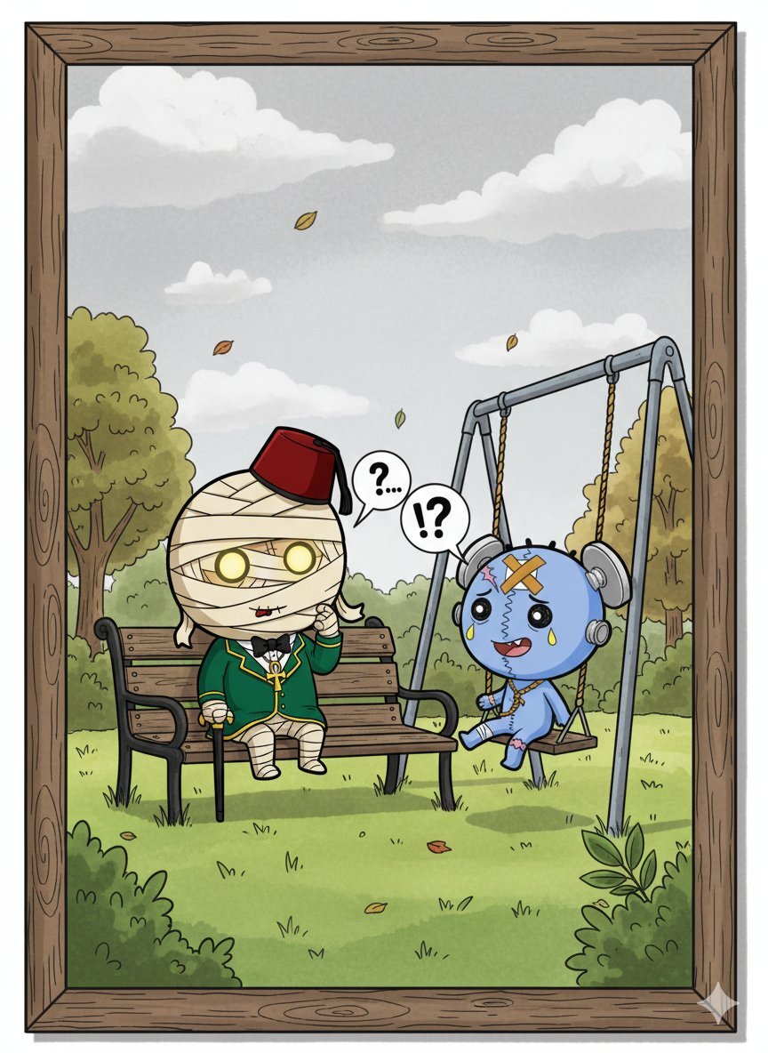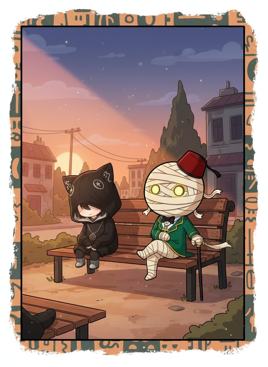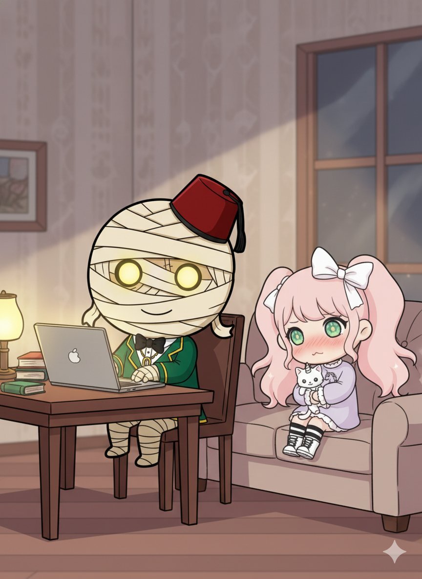 ロイス「人は“隠す”ほど、見たいと思われるものだね」 ソラ「……ロイスさんも、包帯の下を見せないじゃないですか」 ロイス「ふむ、では君は——心の包帯を解く覚悟はあるかい?」 ソラ「……それ、ミイラさんに言われると説得力ありますね」 #ちょっと不器用な会話録 #静かな哲学 #夕暮れ会話 #ボケ pic.x.com/4Zb26bywYx