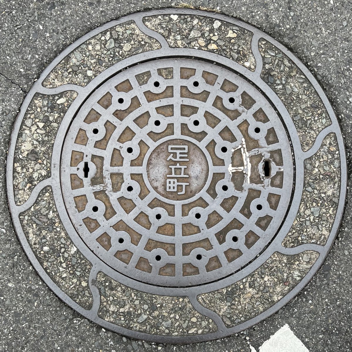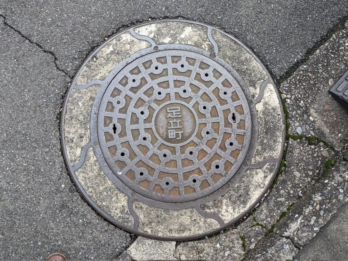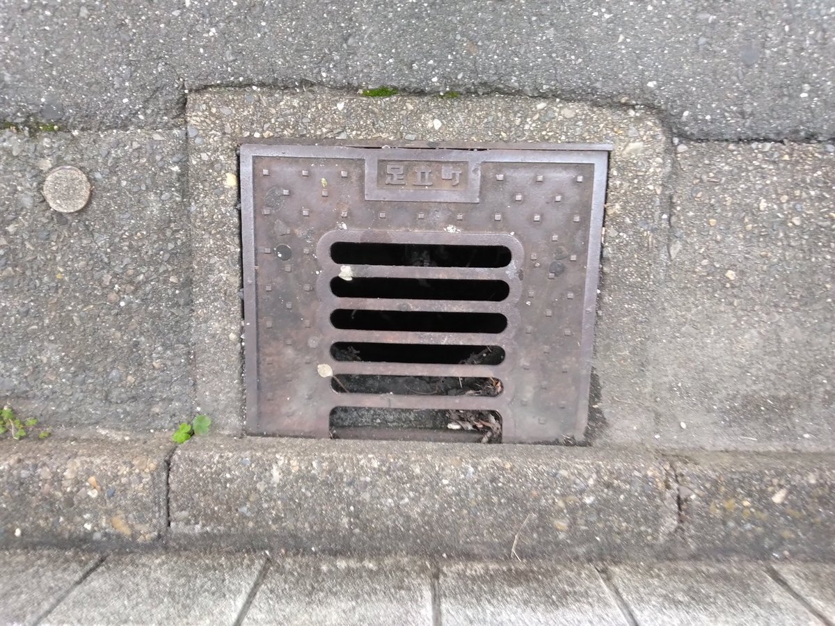 #ちょっと古い蓋 足立町の側溝蓋。 「足立町」の文字が上向きの物と下向きの物が有ります。 pic.x.com/X1sSoJUVvX x.com/manholenight/s…