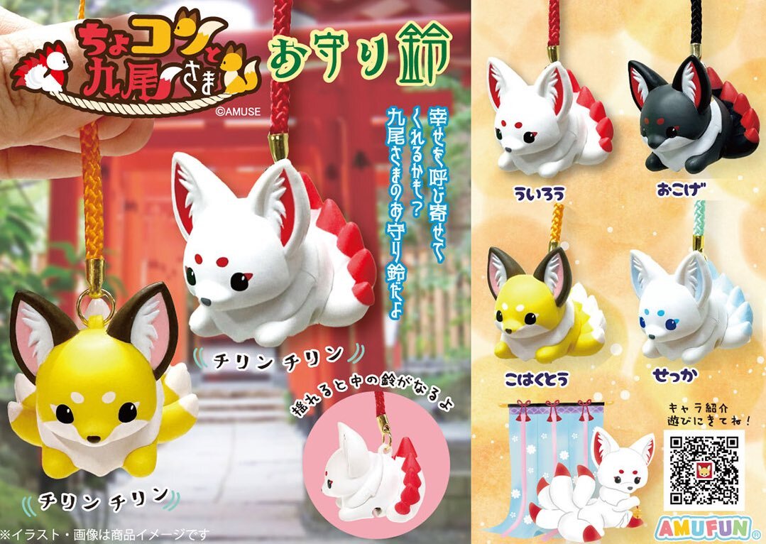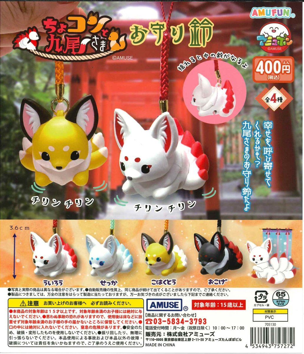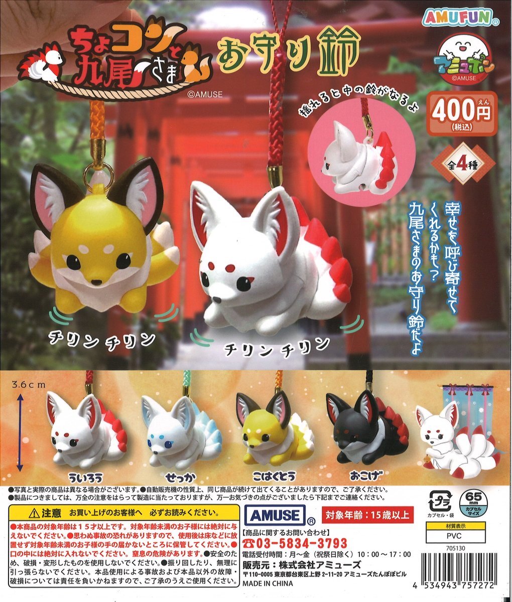 ちょコンと九尾さま お守り 鈴 全4種+ディスプレイ台紙セット アミューズ ガチャ コンプリート #ちょコンと九尾さま #ストラップ #チャーム #根付 #ガチャ a.r10.to/hovtHS