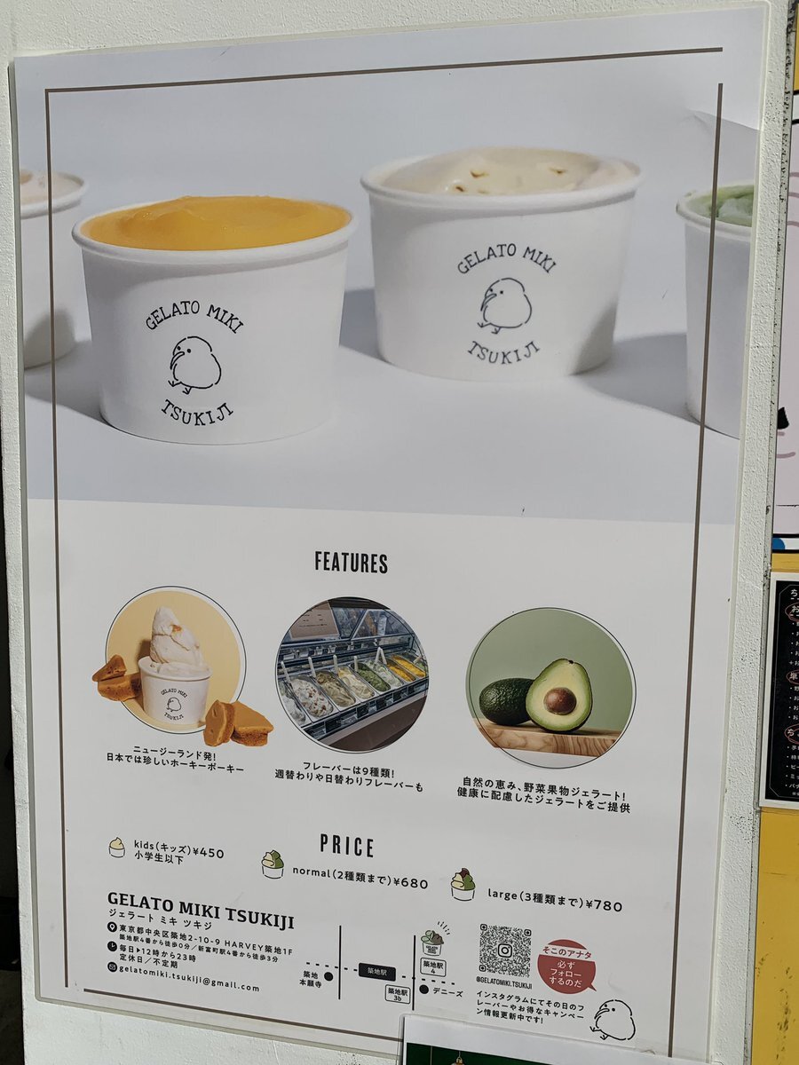 築地駅徒からすぐ🚶 🌕夜23時まで営業のジェラート専門店✨ 常時9種類のこだわりフレーバーを用意🍨 一番のオススメは東京初の「ホーキーポーキー」!キャラメル風味で甘く、ほろ苦い味わい😋 仕事帰りのデザートにもピッタリです❣️ #ジェラートミキ築地 #築地 #つきじgo pic.x.com/Oznu5Mskz6