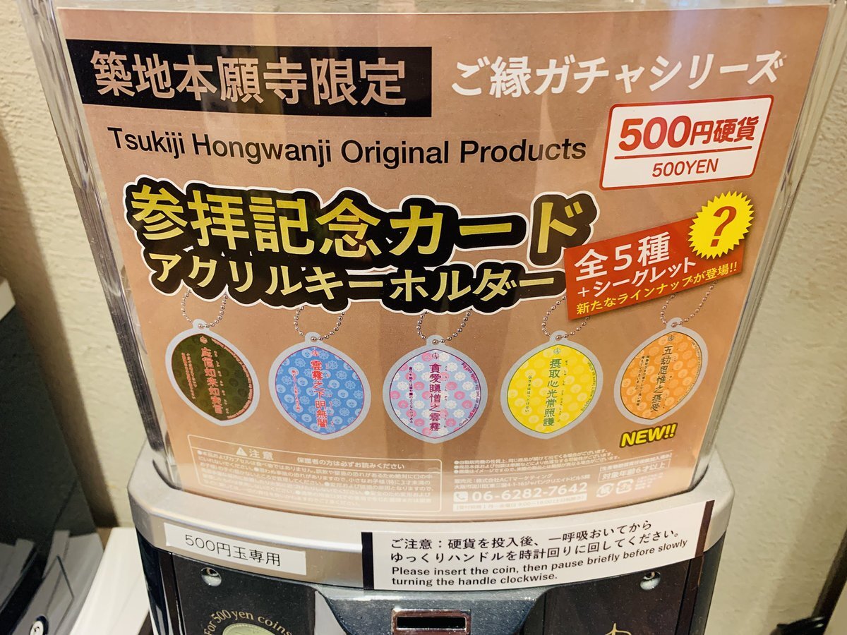 築地本願寺カフェにある築地本願寺限定ガチャ❗️ 本願寺のマーク、浮世絵、参拝記念カードのキーホルダーをGETしよう✨ 参拝後の休憩にもぴったり🍵☕️🍰 #築地本願寺 #築地 #つきじgo pic.x.com/8nauQjiehD