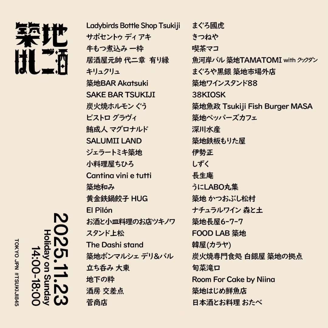 🍶築地の名店を巡る🍶 ✨築地はしご酒2025開催!✨ 🗓️11/23(祝) 14:00-18:00 💴参加費: 1,000円 事前予約制です。各店舗で受付❗️ 美味しいグルメと日本酒をはしごしよう😆🚶💨 #築地 #築地はしご酒 #つきじgo pic.x.com/SzGsAYy5GI