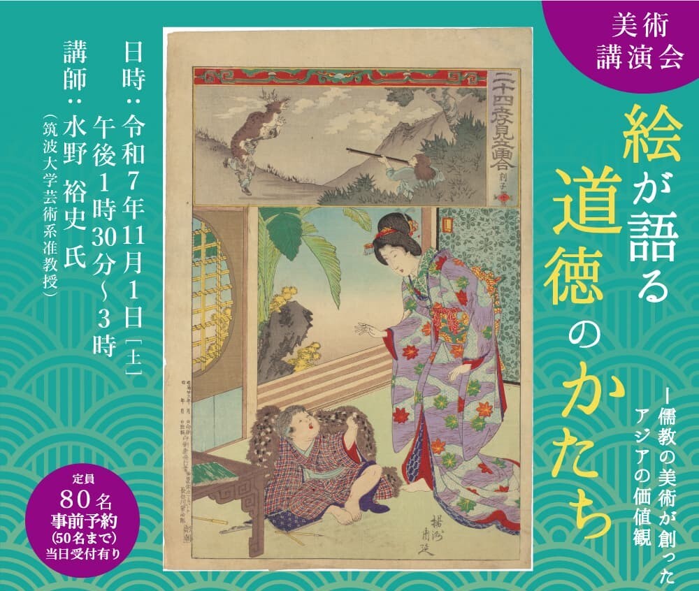 #つくば美術館 では11月1日(土)13:30より美術講演会「絵が語る道徳のかたち-儒教の美術が創ったアジアの価値観」を開催します。講師は #筑波大学芸術系 准教授 #水野裕史 氏です。儒教に基づき描かれた親孝行や礼儀についてお話していただきます。事前申込受付中⇒tsukuba.museum.ibk.ed.jp/event.html#eve… pic.x.com/OzkzJ8demR