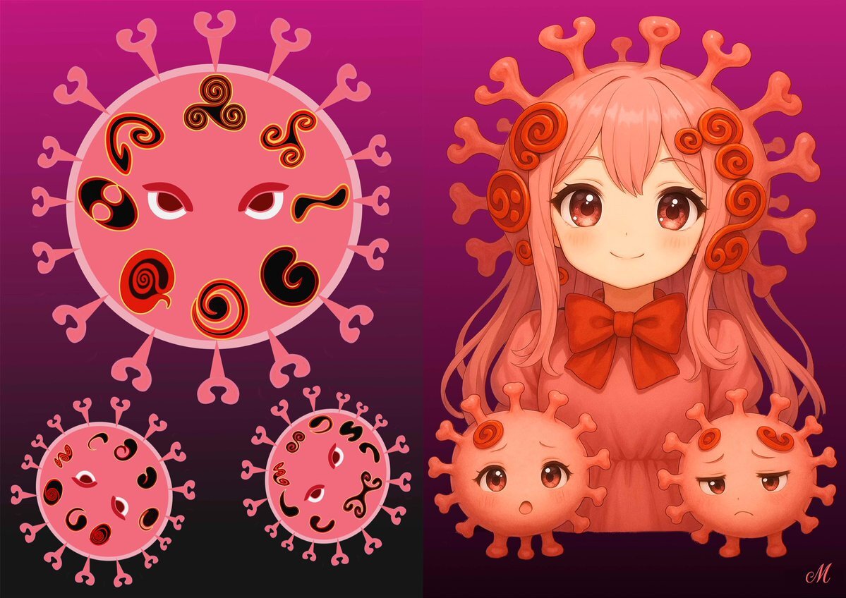 コロナウィルスの擬人化 728mmx515mm b2号です #絵描きさんと繋がりたい #秋の創作クラスターフォロー祭り #擬人化 #コロナウィルス #ChatGPT #茨城現展 #つくば美術館 #ソクプリ pic.x.com/f3ByXhoakE