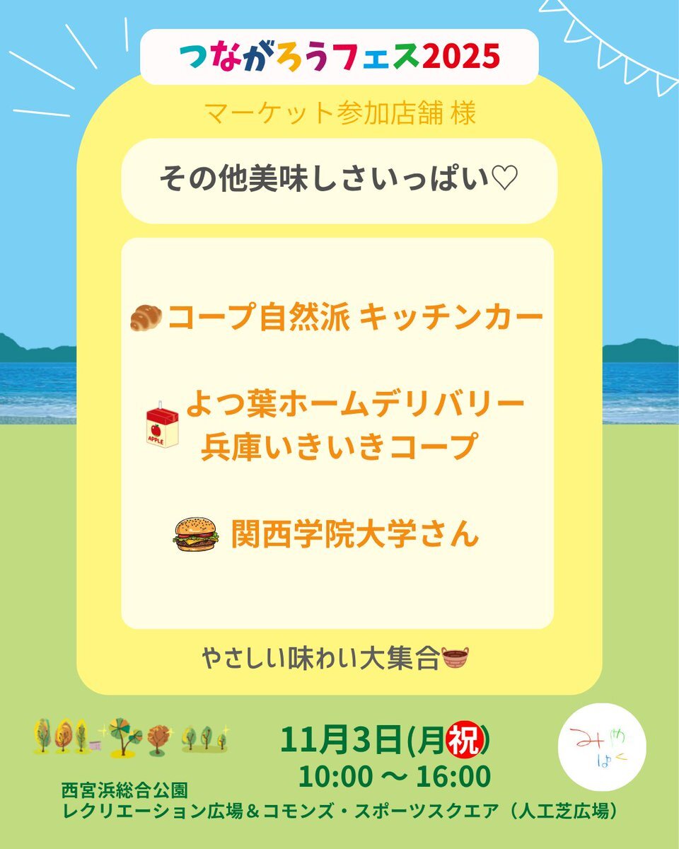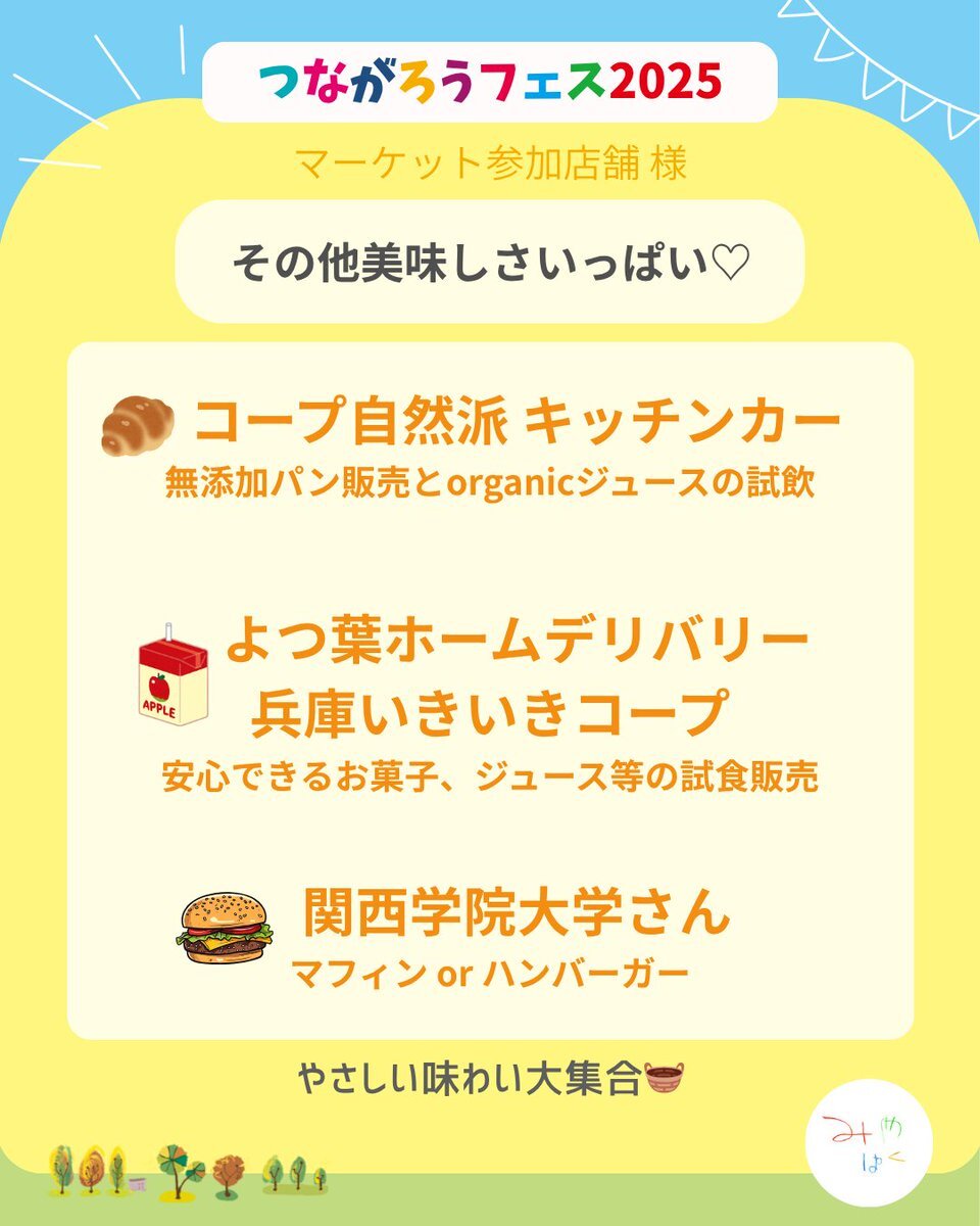 \やさしい美味しさ大集合🧺/ 無添加パンにorganicジュース安心おやつの試食も♬ 学生さんのマフィンorバーガーも🍔 世代を超えて楽しめる、ほっとひと息のマーケット✨ 📍つながろうフェス2025 miyapaku.hp.peraichi.com/tsunafes #つながろうフェス #コープ自然派 #よつ葉ホームデリバリー #関西学院大 pic.x.com/tOkhOwpTwH