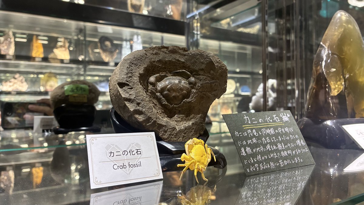 山梨県富士河口湖町 石の博物館に来ました🪨💎٩(¨ )ว カニの化石や大きい水晶にビックリしているかにさん🦀→🪨 #つぶらな瞳の仲間達 #つぶらな瞳の水族館 #石の博物館 pic.x.com/nkzHNvOJIa