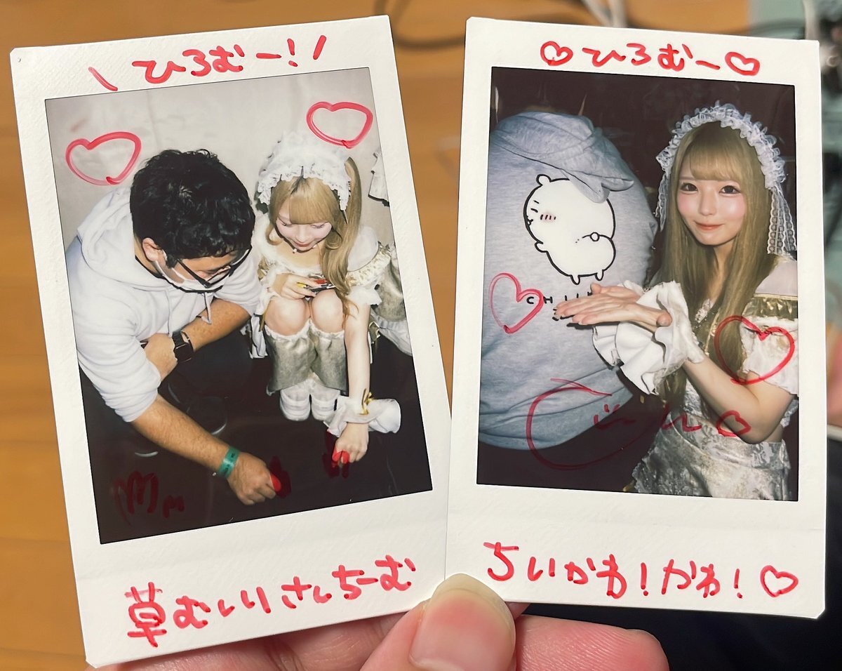 つむちゃん。 昨日今日のチェキ。 スペースをよく聞かせてもらってるのですが、若い娘の話題と大人の女性の話し方が同居していて心地が良いです。落ち着いた声とテンションが上がっても穏やかな雰囲気も良き。 見た目がギャルっぽいので囲みはギャルピでやってもらいました。 #つむとつむぐ pic.x.com/SYNHi1RPTg