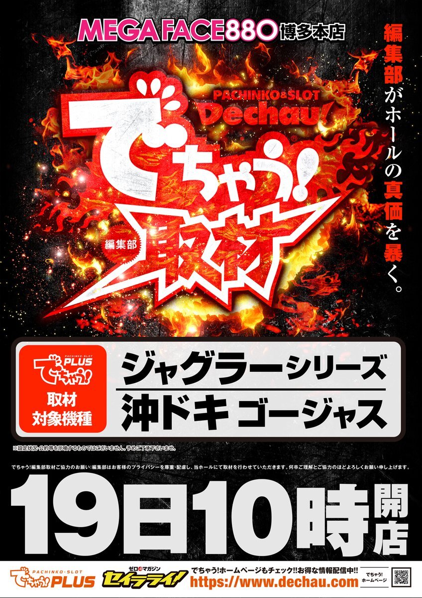 19日 日曜日 10時オープン🌞 明日も #でちゃう編集部取材 実施✨✨ 対象機種【ジャグラー🤡&沖ドキ🌺】 そして今週のオススメ機種達は明日までとなってます😉 18時30分からはカウンター横で 🎂ケーキ🍰販売予定です😋🎶 ご来店お待ちしております💃🎵 pic.x.com/AFfTH5GGyp