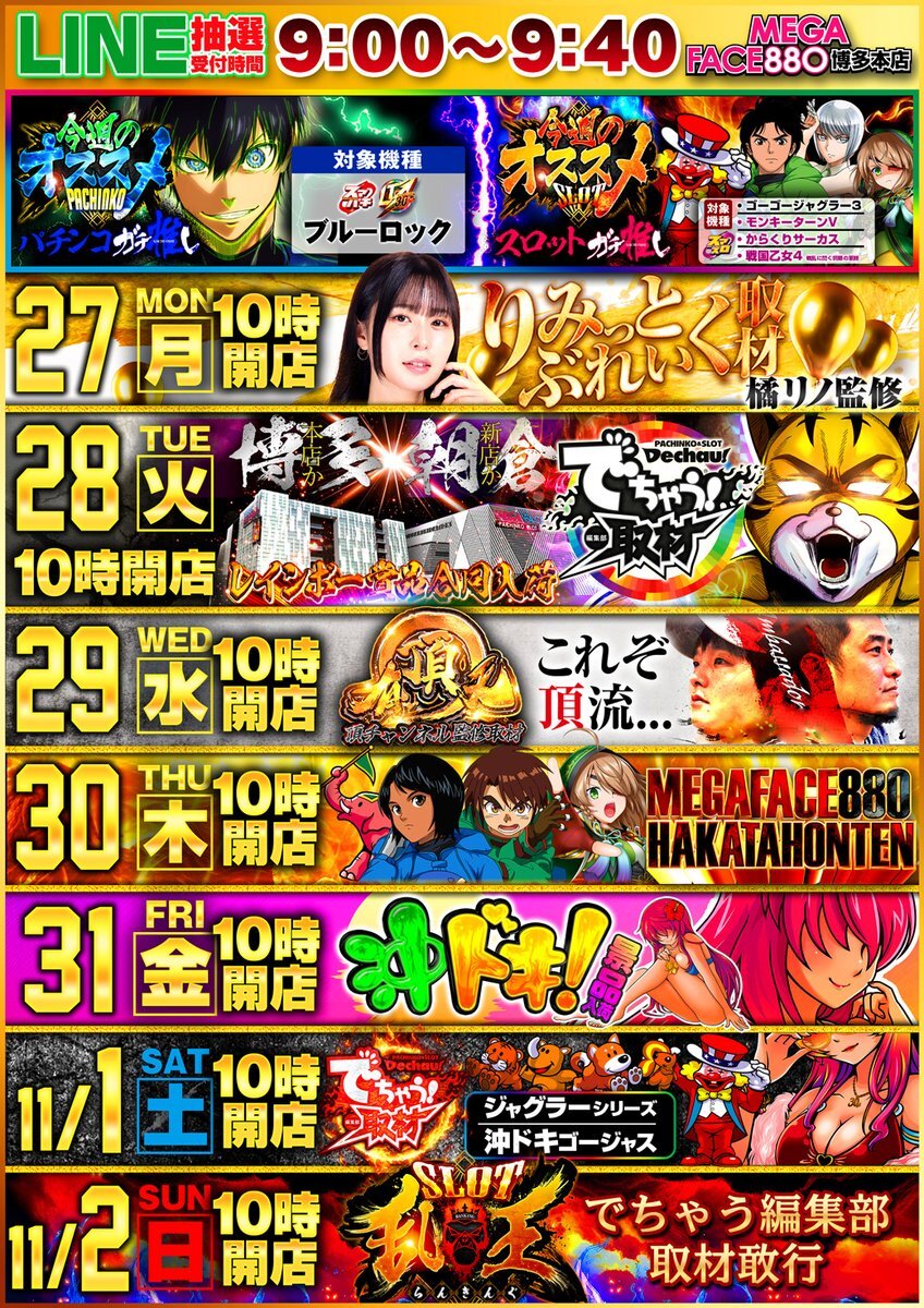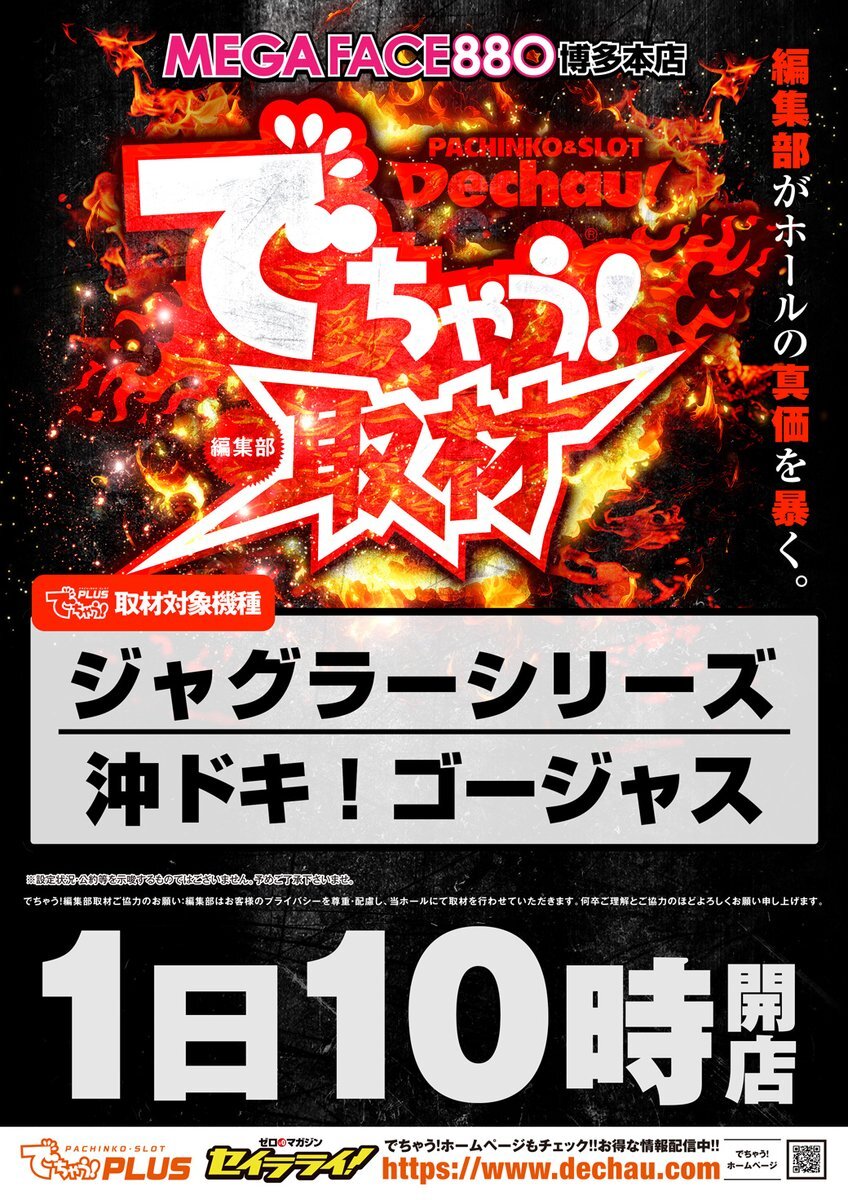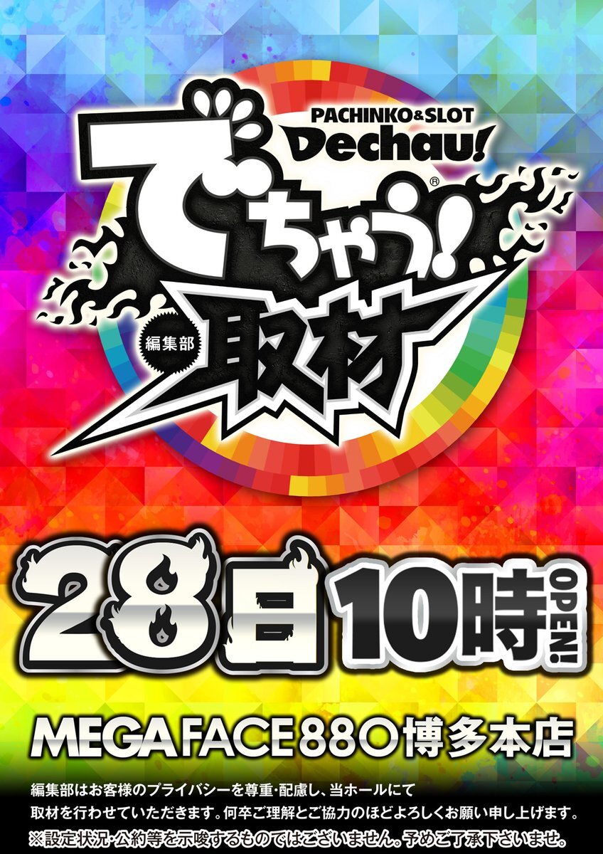 28日 火曜日 10時OPEN🤩✨✨ 明日は #でちゃう編集部取材 実施📷💥 そしてメガフェイス朝倉店【@face930asakura】と 合同で🌈レインボー賞品🌈入荷予定です😉💕 今週のオススメ機種達もよろしくお願いします‼️( 'ω') 沢山のご来店お待ちしておりますヾ(*´∀`*)ノ💕 pic.x.com/LjLeFqzOGw
