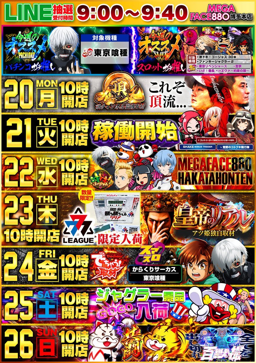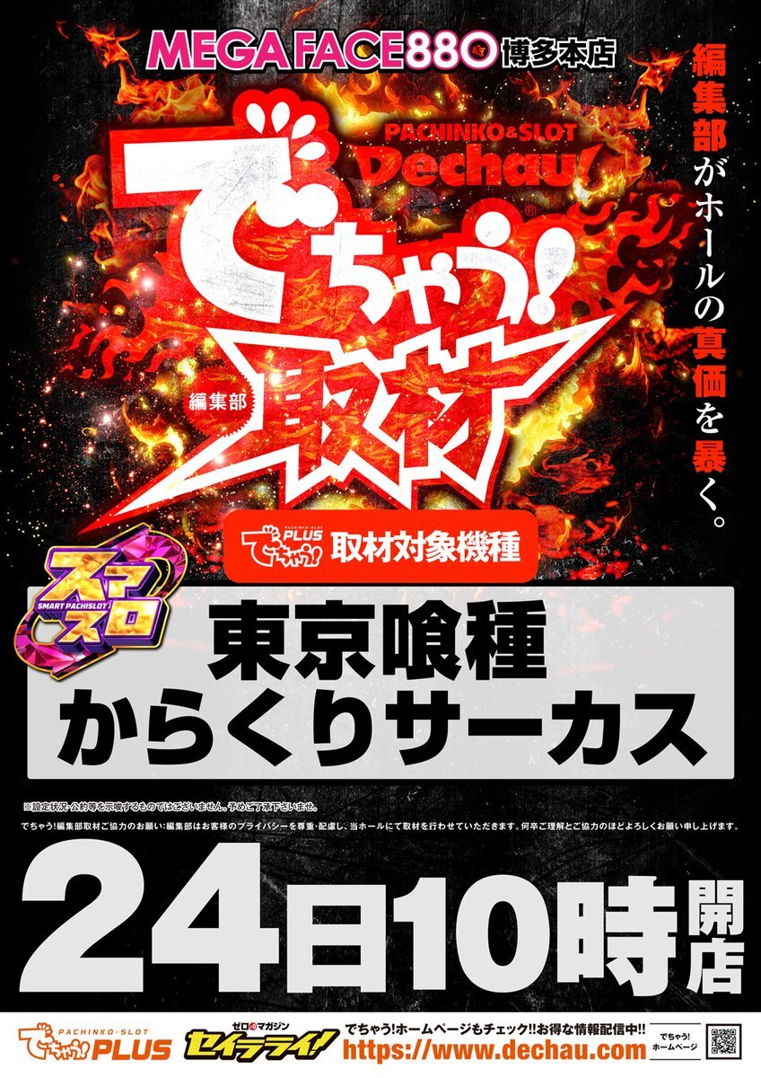 24日 金曜日 10時オープン💗 明日は #でちゃう編集部取材 予定📷✨ 対象機種【L からくりサーカス🎪&L 東京喰種💥】 18時30分からはカウンター横で 🥚たまご🥚販売もあります🐓🍳 ご来店お待ちしております😃💕 pic.x.com/8vgjIeJYvH