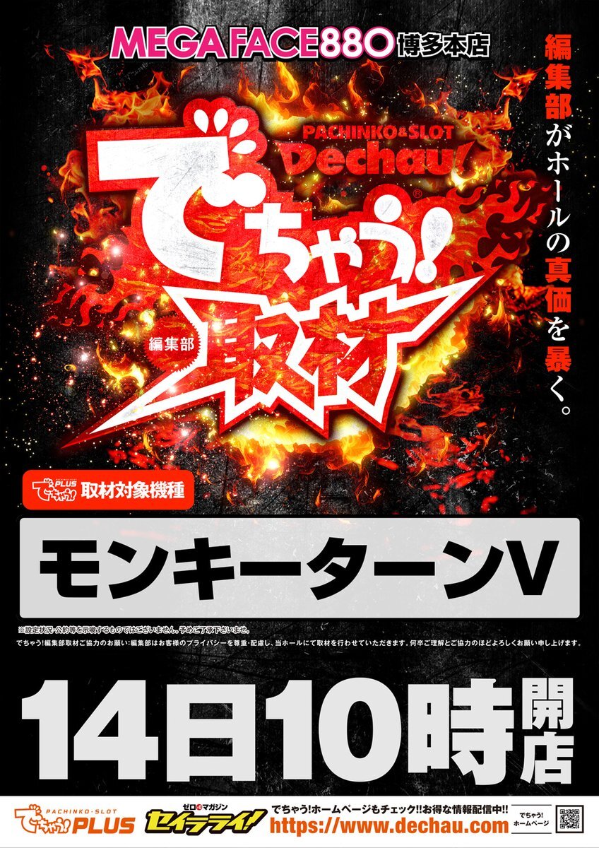 14日 金曜日 10時オープン✨ 明日は #でちゃう編集部取材 予定📷💥 対象機種【L モンキーターン🚤】 そして‼️ファン感謝デー始まりますヾ(*´∀`*)ノ💕 開催期間は3日間🎶 抽選時間は14時&19時からとなってます💃✨ 沢山のご来店お待ちしております\( 'ω')/💗 pic.x.com/1uheaE2apm