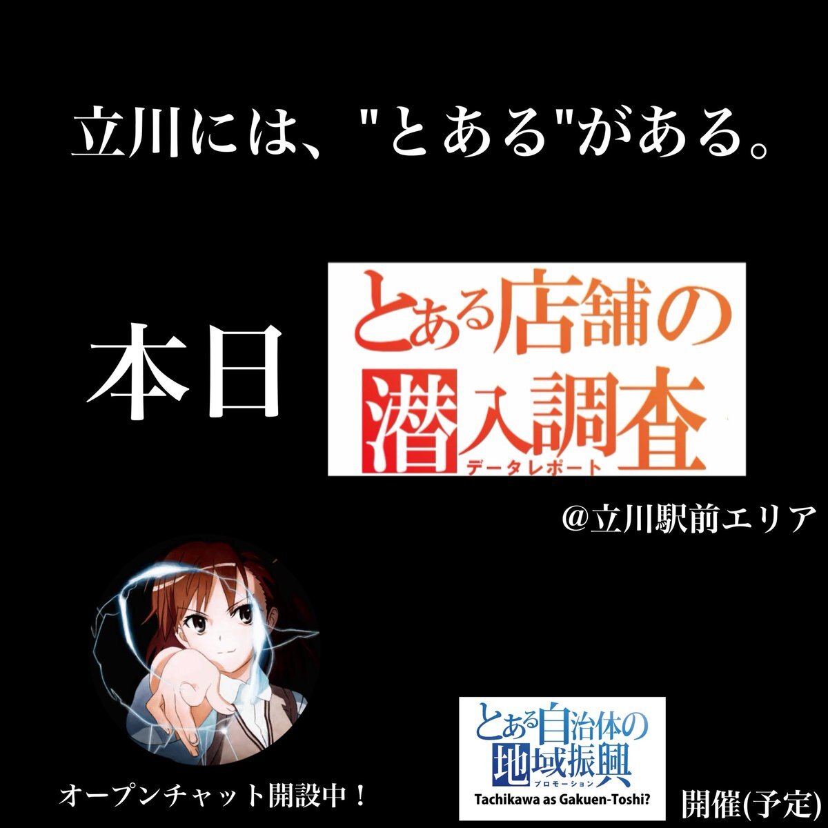 おはようございます☀️ 177支部です⚡️ 本日は #とある店舗の潜入調査 同日 #とある自治体の地域振興 も 併せて開催中です⚡️ #立川 #とある魔術の禁書目録 #とある科学の超電磁砲 pic.x.com/mA3fEyX31k