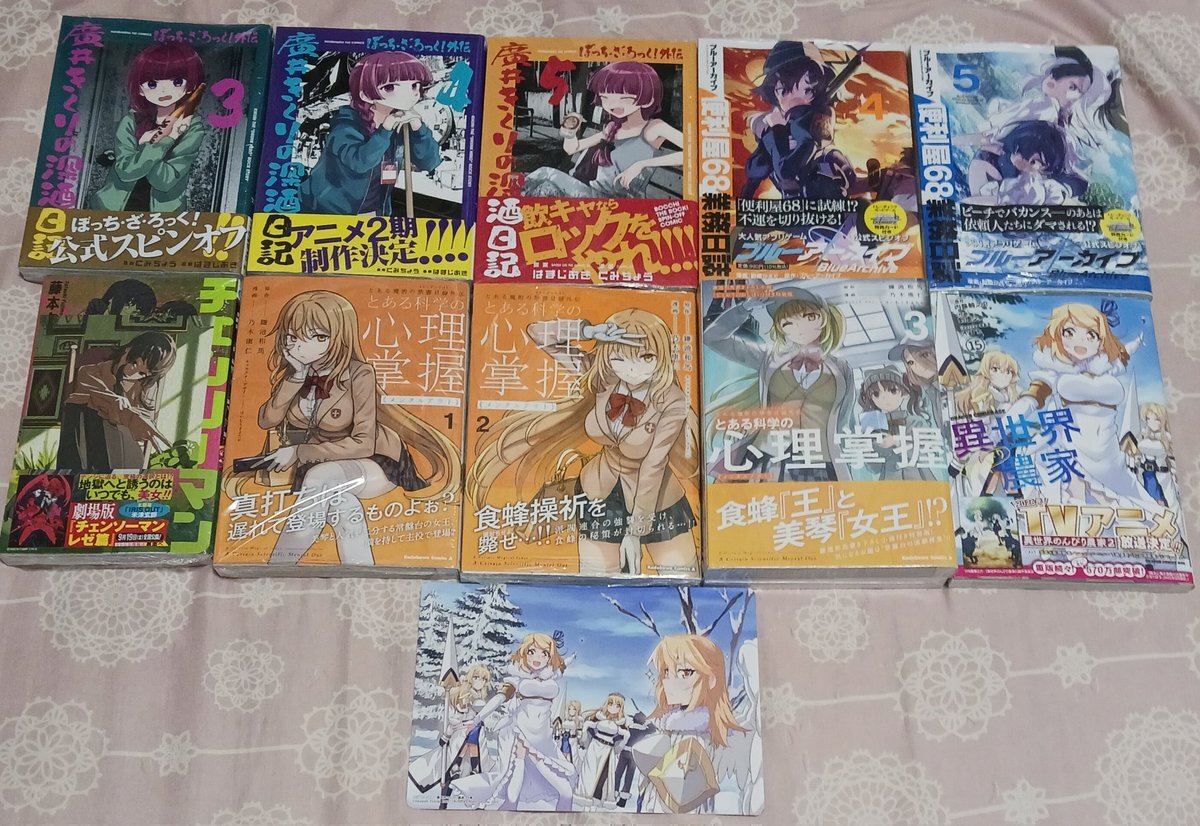 #今日買った漫画 #新刊 #ぼっち・ざ・ろっく外伝廣井きくりの深酒日記 3~5 #ブルーアーカイブ便利屋68業務日記 4、5 #チェンソーマン 22 #とある科学の心理掌握 1~3鎌池和馬書き下ろし小説『じょおうのおしばい』付き特装版 #異世界のんびり農家 15 #漫画好きと繋がりたい pic.x.com/WVilcKiDTi