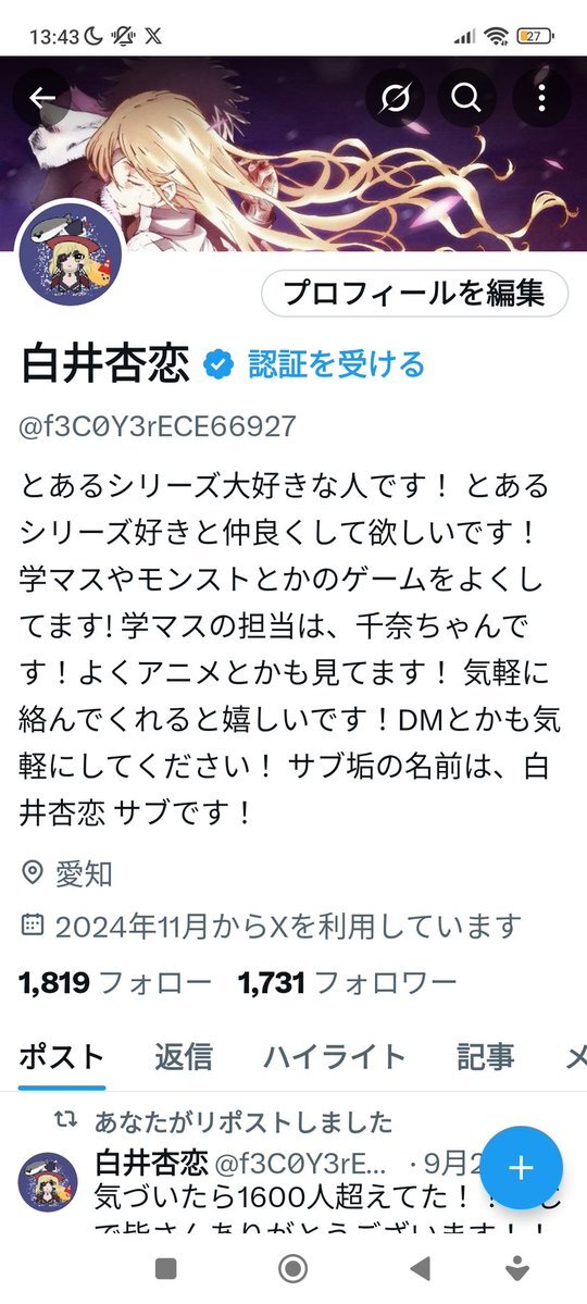 祝!!フォロワー1700人超えた!!!10日前までは、1640人くらいだったのに!! これからもいつも通りのツイートをしていきますわ!!! これからもよろしく! #フォロバ100怪しい垢以外 #アニメ好きな人と繋がりたい #学マス好きと繋がりたい #とある魔術の禁書目録 #拡散希望RTお願いします pic.x.com/z7OLEOCuR6