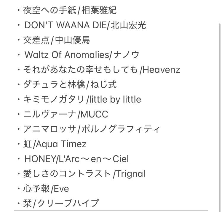 #とぅーしさんに歌ってほしい歌 「千の翼」自分以外にも選んでる方いて嬉しい😆 他の方の選曲の中だと、 コンプリケイション / ROOKiEZ is PUNK'D 月光花 / Janne Da Arc ニルヴァーナ / MUCC バンド名も決まったことですし、思いっきりバンドっぽい曲やってみてほしい!