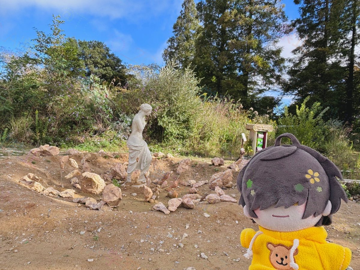 びーなす 中学高校の美術部が製作したんだって すごいねぇ! 分かりにくいけど、植物が羽根のように付いてる🪽 横に面白いガチャガチャ置いてあって、愛の女神なのに「愛を握り潰せ!」とか書いてあった😂 砕くと香る葉っぱが入ってたみたい🍃 #とうらぶぬい部 pic.x.com/2W2AG1zU6q