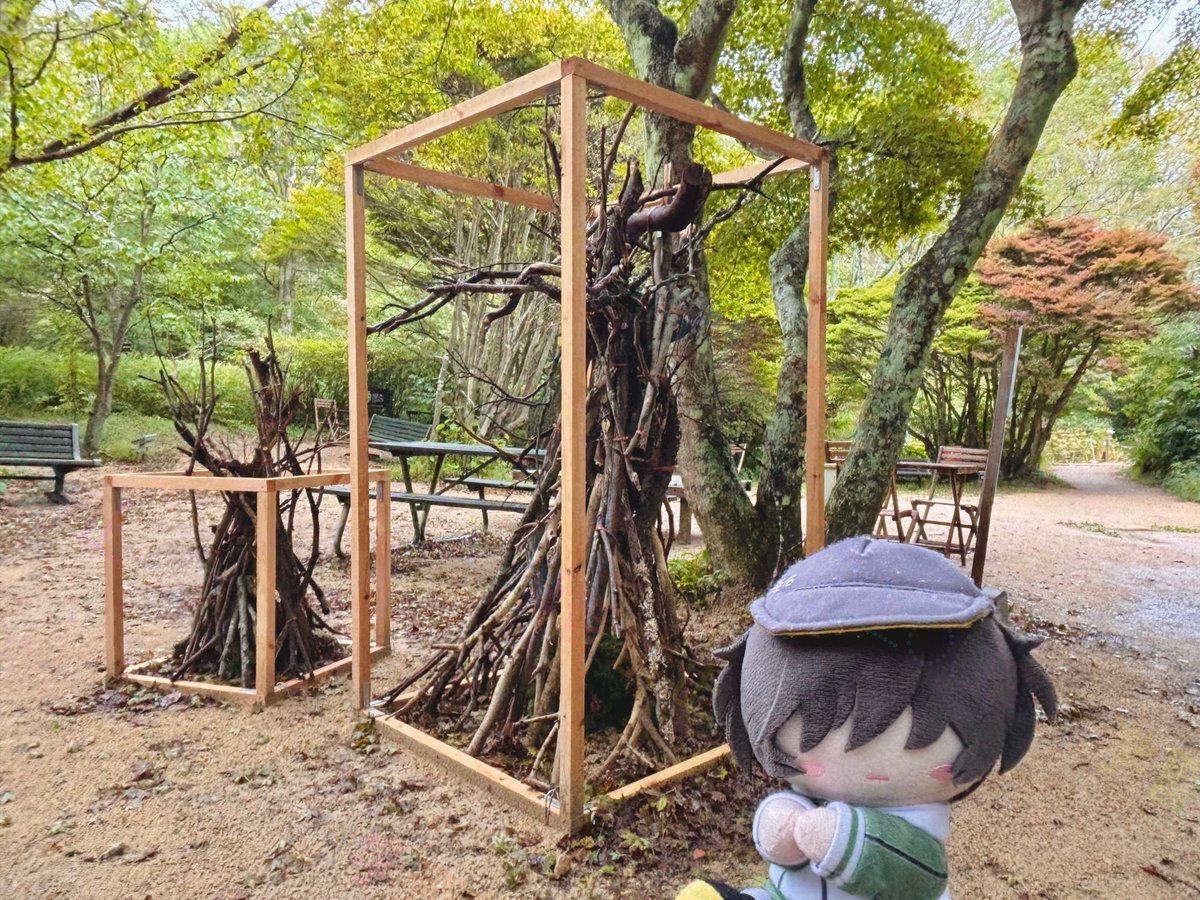 この辺りの木を木枠に収めたものだそう これも、アート🎨 おくがふかいねぇ🪵 #とうらぶぬい部 #ぴたぬい刀剣男士 pic.x.com/InEyPvxfAY