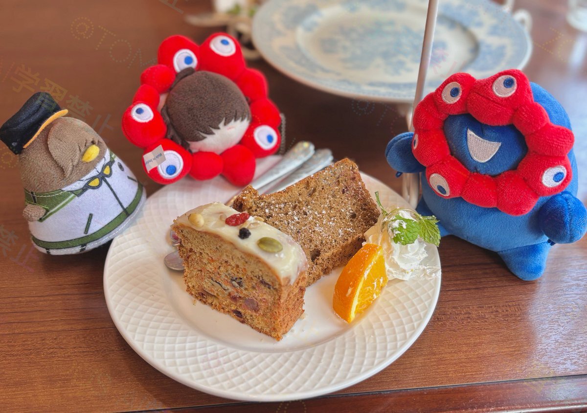 キャロットケーキと紅茶シフォンケーキ🫖 ミャクミャク、ミャクもち、ちゅんと一緒に食べよ🍴 #とうらぶぬい部 #とうらぶおもち部 pic.x.com/f83V7xPmNP