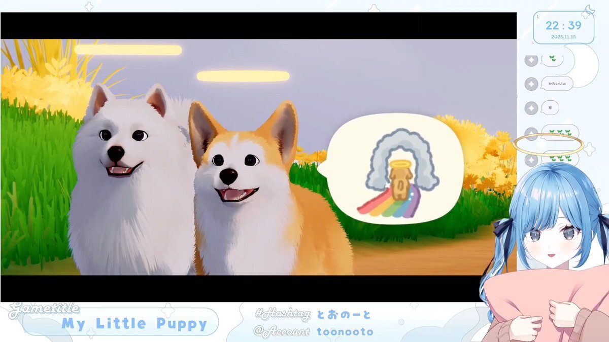 今日はワンちゃんのゲーム◤•ω•◥ 天使輪っかのツインテおとちゃん凄くかわいい~.ᐟ #とおのーと 〖 My Little Puppy 〗泣ける神ゲーだと話題の新作.ᐟ.ᐟ天国のご主人に会いに行くわん🐶✧*。〖 透乃おと / Varium 〗 youtube.com/live/uaONw7D4a… @YouTubeより pic.x.com/9E6xEfNrXX