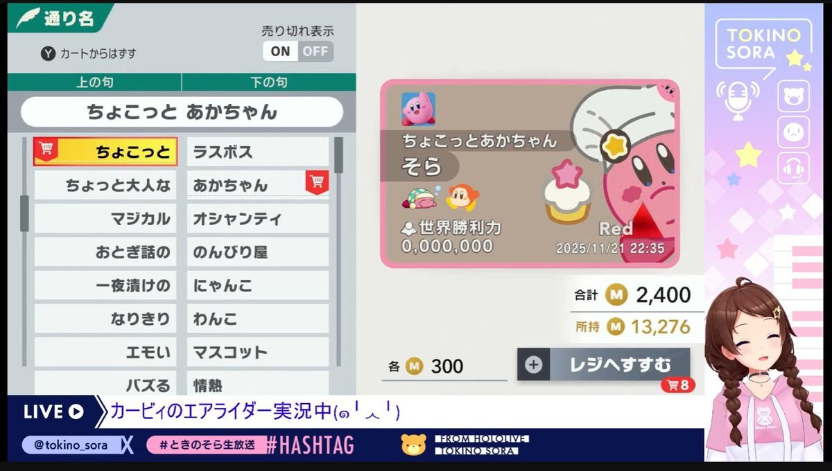 #ときのそら生放送 ちょっと大人なあかちゃん 【カービィのエアライダー】カービィかわいいから遊んでみる!【ホロライブ/ときのそら】 youtube.com/live/_JwDDdSzQ… pic.x.com/2F42tecwGa