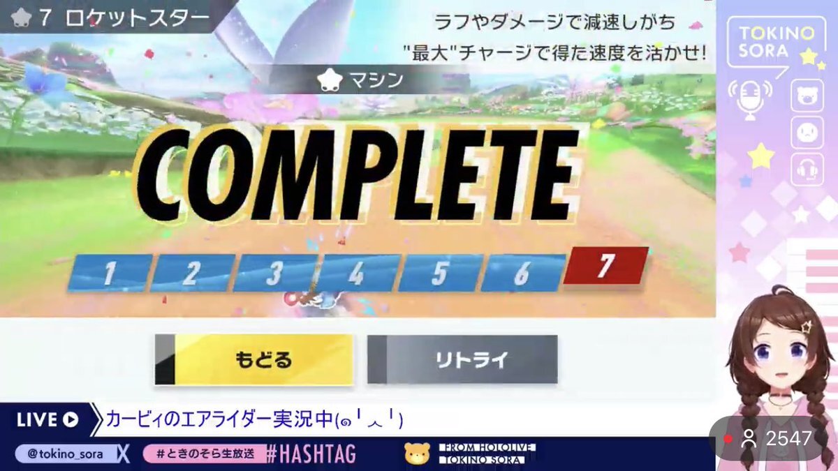 カービィのエアライダー配信お疲れ様でした! チュートリアルを見てて結構テクニックが多くて難しそうだな~と思ってたけれどさすがそらちゃん上達が早い(๑╹ᆺ╹) とても楽しそうにやっていてニコニコしました✨ 酔い止めのガイドも効果があって何より! 遅くまでありがと~! #ときのそら生放送 pic.x.com/qoMzvEdWow