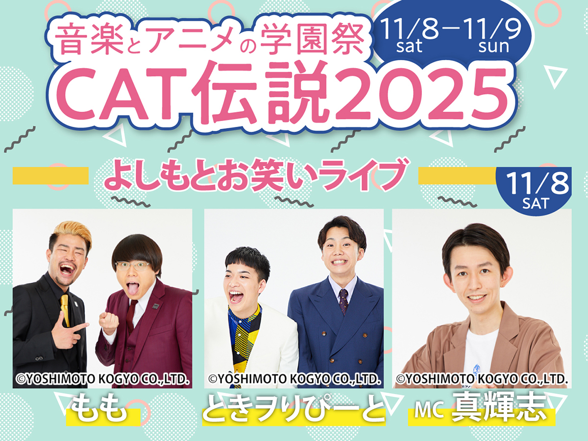 【音楽とアニメの #学園祭#CAT伝説2025 <開催日>11/8(土) #よしもとお笑いライブ に#もも、#ときヲりぴーと#真輝志 の出演が決定!! 豪華3組によるお笑いライブを行います! ▼詳細&申し込み▼ cat.ac.jp/topics/archive… pic.x.com/HYITG9nUWU