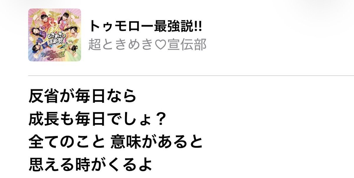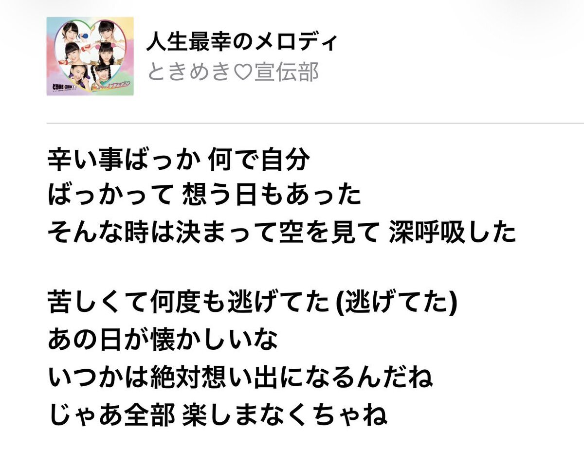 一時はどうなるかと思ったけど、厳しい意見に対して、宣伝部員さんが悪意を向けるんじゃなくて推しへの愛をぶつけることで丸く収まりそうでよかった😌 とき宣に良くも悪くも注目集まってる今こそ #とき宣の歌詞は超最強 でもう一回トレンド載せませんか!! #超とき宣 #超ときめき宣伝部