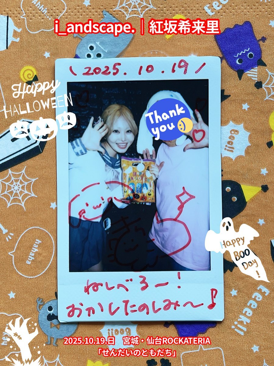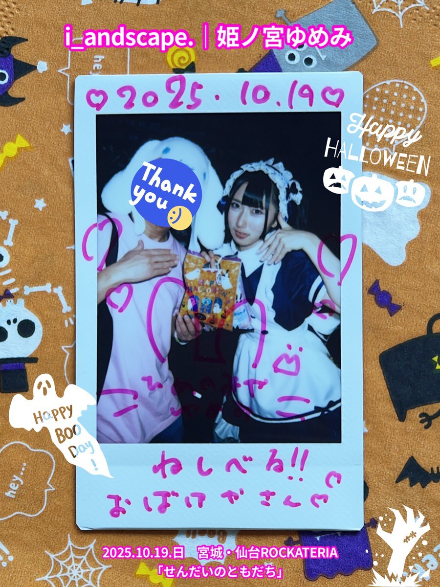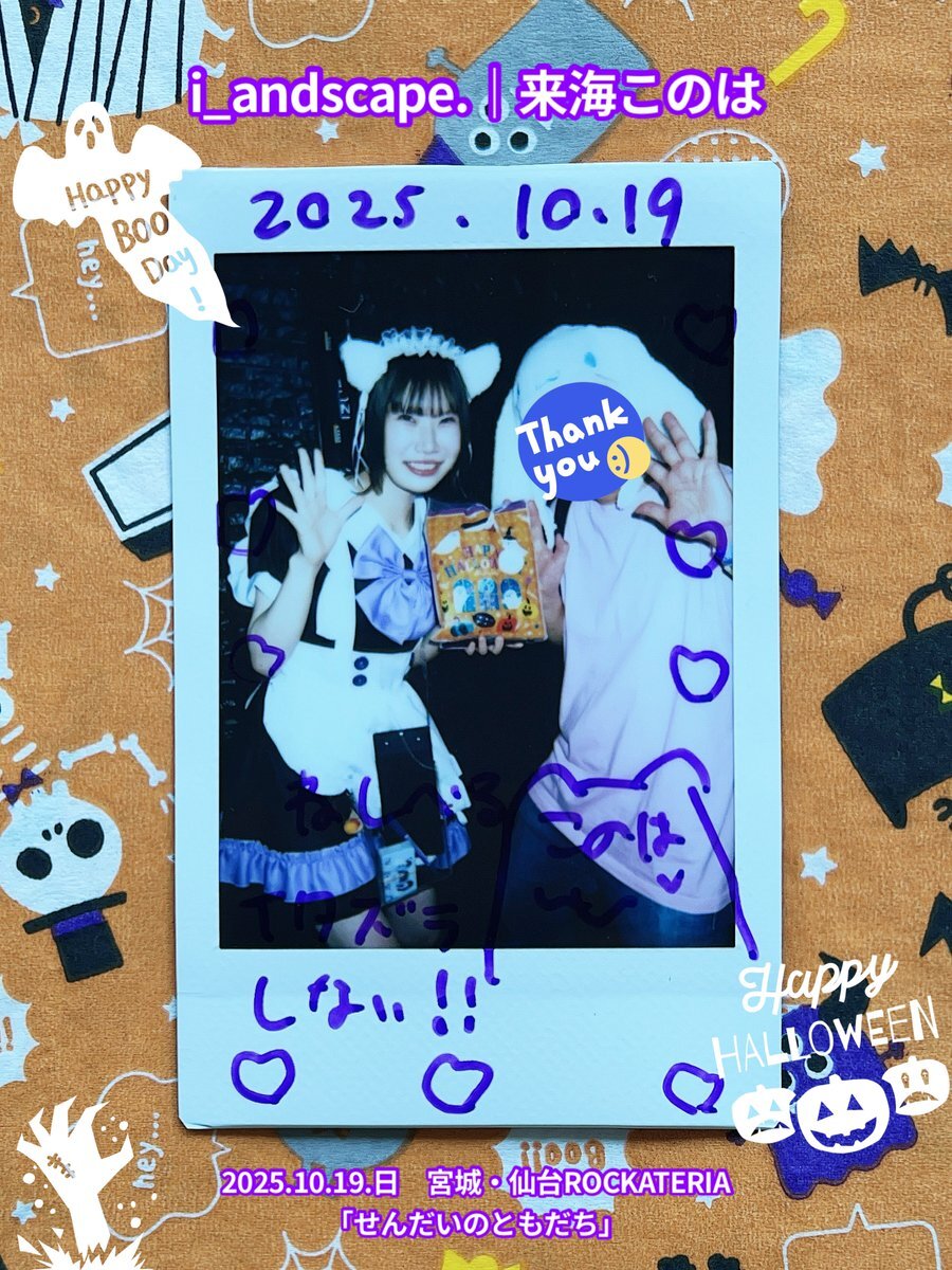 2025.10.19.日 #チェキ 3/3 仙台ROCKATERIA♬2ステージ 『あかりおちゃん大作戦』 『せんだいのともだち』 #i_andscape #来海このは #ほくほくこのは 💜 #紅坂希来里 #とっとこきらり ❤️🔥 #姫ノ宮ゆめみ #ゆめみ本日の猪突猛進 💖 #仙台 #アイドル #仙台アイドル #ハロウィン2025 🎃 ♡૮ . ̫ . ა♡ pic.x.com/x7XyzAOyLu x.com/i_andscape/sta…