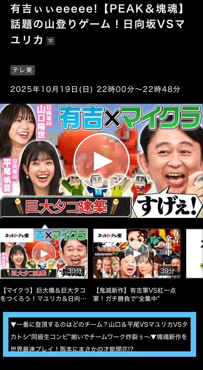 【ドタバタ建築】日向坂46平尾&山口と一緒に巨大橋&巨大タコを建築!【有吉ぃぃ×マイクラ】 #とっとりふるさと大使 youtu.be/ho0I_YIisno?si… @YouTubeより
