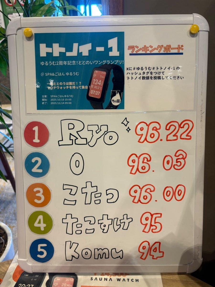 トトノイ‐1グランプリランキングボード更新いたしました‼ 順位に変動がありました✨1位と2位の差はなんと0.19点差です、、かなりハイレベルな戦いになっております! #ゆるうむ #トトノイ1グランプリ #ととのう #サウナイキタイ pic.x.com/yFHWmJQ3XO