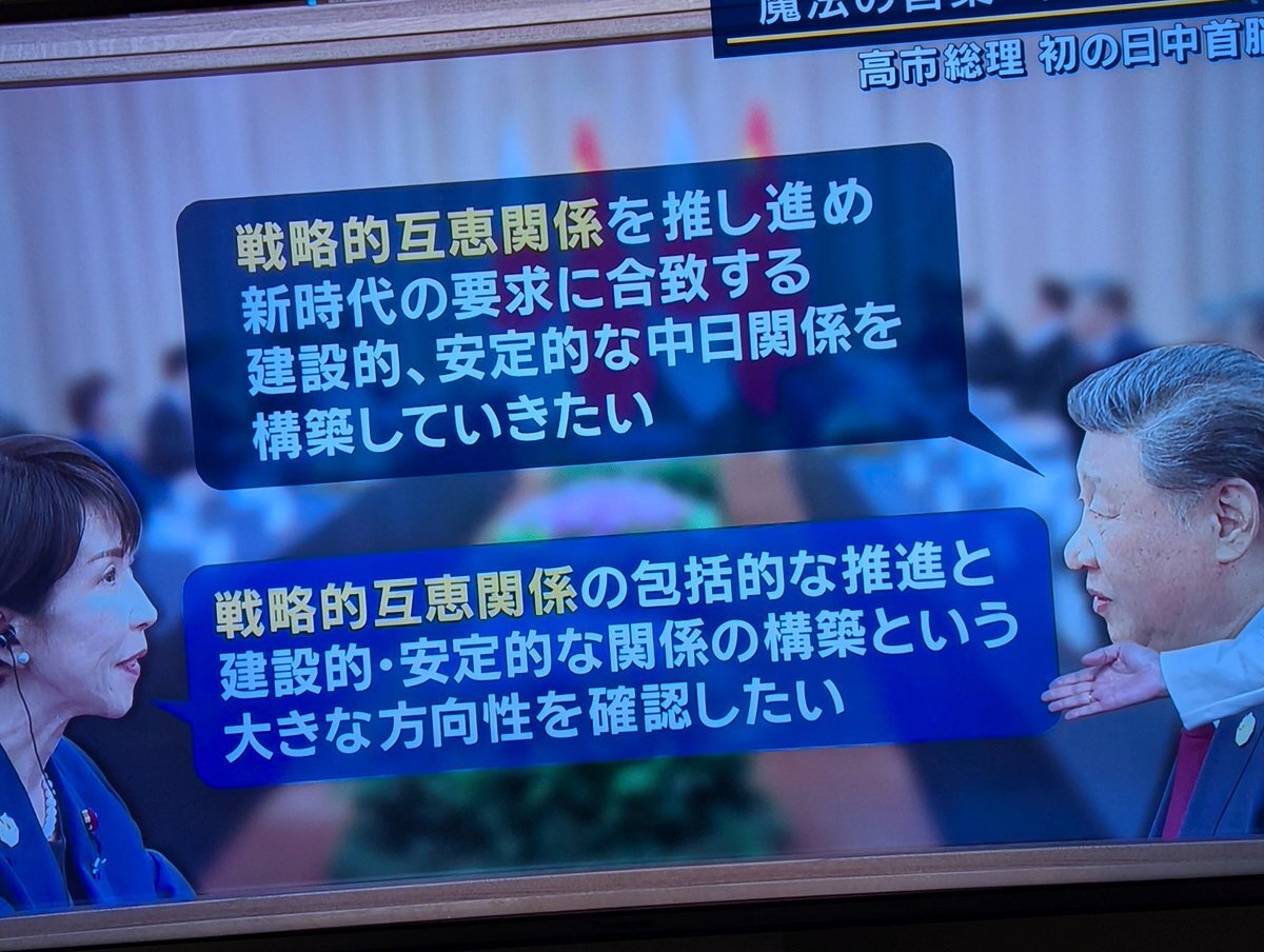 報道ステーションが日中首脳会談を中国寄りの解説をしてます。対中強硬派とレッテル貼りしてた高市総理といち早く会った上に、安倍政権時代の戦略的互恵関係という言葉を会談冒頭に持ってきた理由をちゃんと説明しろよ。習近平は経済行き詰まって困ってるんだよ。ボケが!
