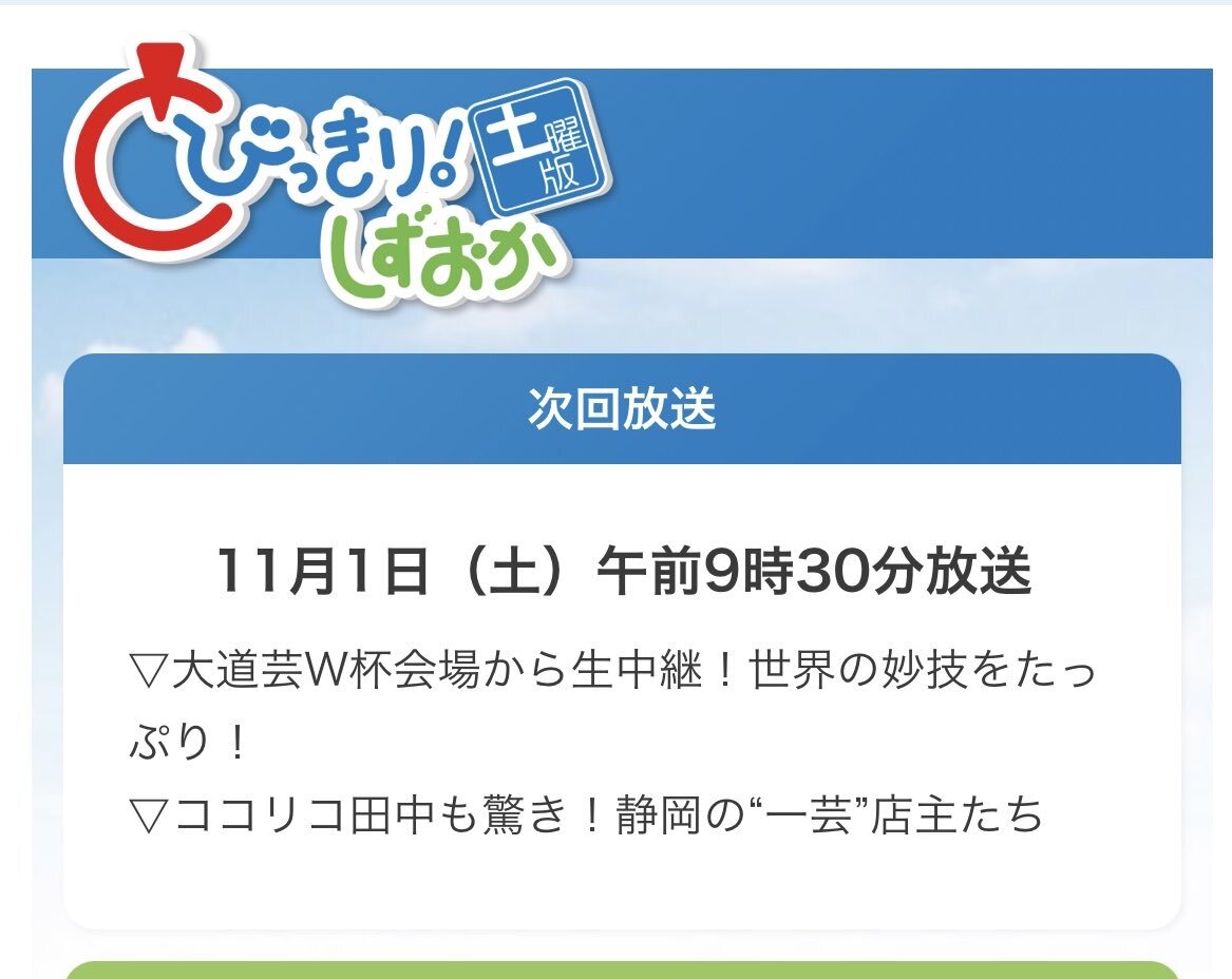 本日11/1(土)【とびっきり!しずおか 土曜版】 午前9時30分〜13時30分頃まで、大道芸が特集されます。 SUKE3&SYUが密着取材されています!パフォーマンスの様子も生中継される予定です!!是非ご覧ください💪 satv.co.jp/0300program/00… #suke3syu #大道芸ワールドカップ #とびっきりしずおか pic.x.com/oskYmT2Ppf x.com/suke3syu/statu…