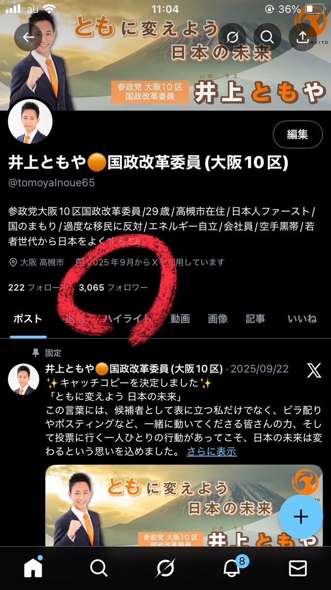 🐦‍🔥参政党🐦‍🔥 井上 ともや @tomoyaInoue65 フォローして応援👆️👆️👆️ #ともに変えよう日本の未来 #毎日どこかに参政党 #参政党は日本の希望 x.com/tomoyaInoue65/…
