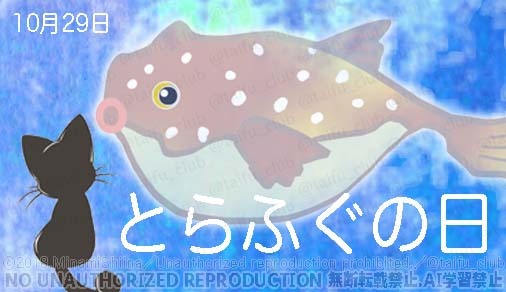 ☀️おはようございます! #とらふぐの日 「と(10)らふぐ(29」の語呂合わせ。 一回だけ専門店でフルコース食べたなぁ~。からあげがとっても美味しかった記憶が……😋 #福ねこと今日は何の日 pic.x.com/sHsYhJRxKK