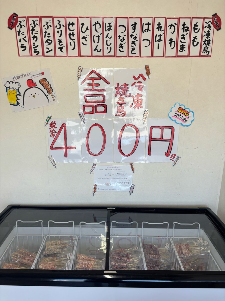 本日も15時営業です🐓 とりちょくは豚串もオススメです‼️ 全て税込400円です。 #とりちょく #焼鳥 #やきとり #冷凍食品 #冷凍焼鳥 #唐揚げ #塩唐揚げ #新潟市南区 #白根 pic.x.com/SBPPswYPrV