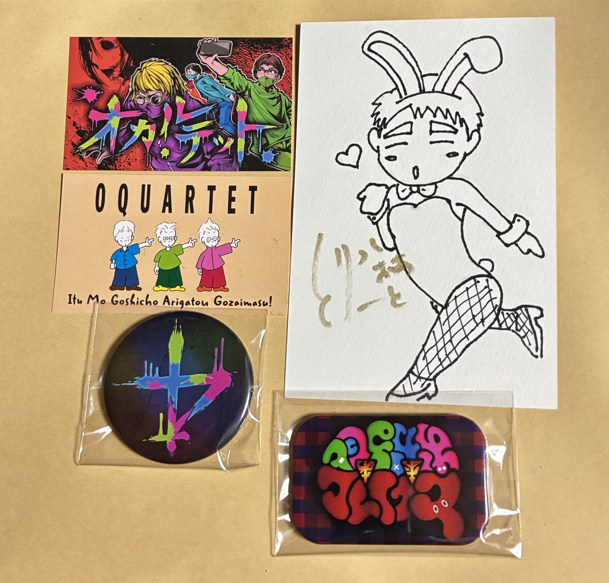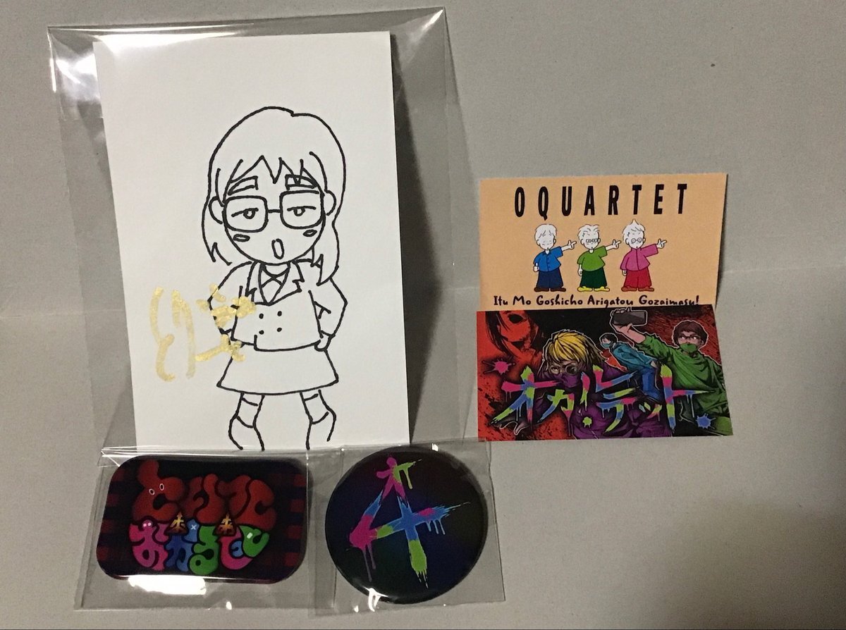 オカルテットさんからプレゼントが届きました🎁 とりっくおあとりーとさんとのコラボなので、とりっくおあとりーとさんの描かれたイラストも❣️ ありがとうございました🙏 #オカルテット #コーノ #ウエハラ #クボタ #とりっくおあとりーと pic.x.com/rAJUtGkRgb