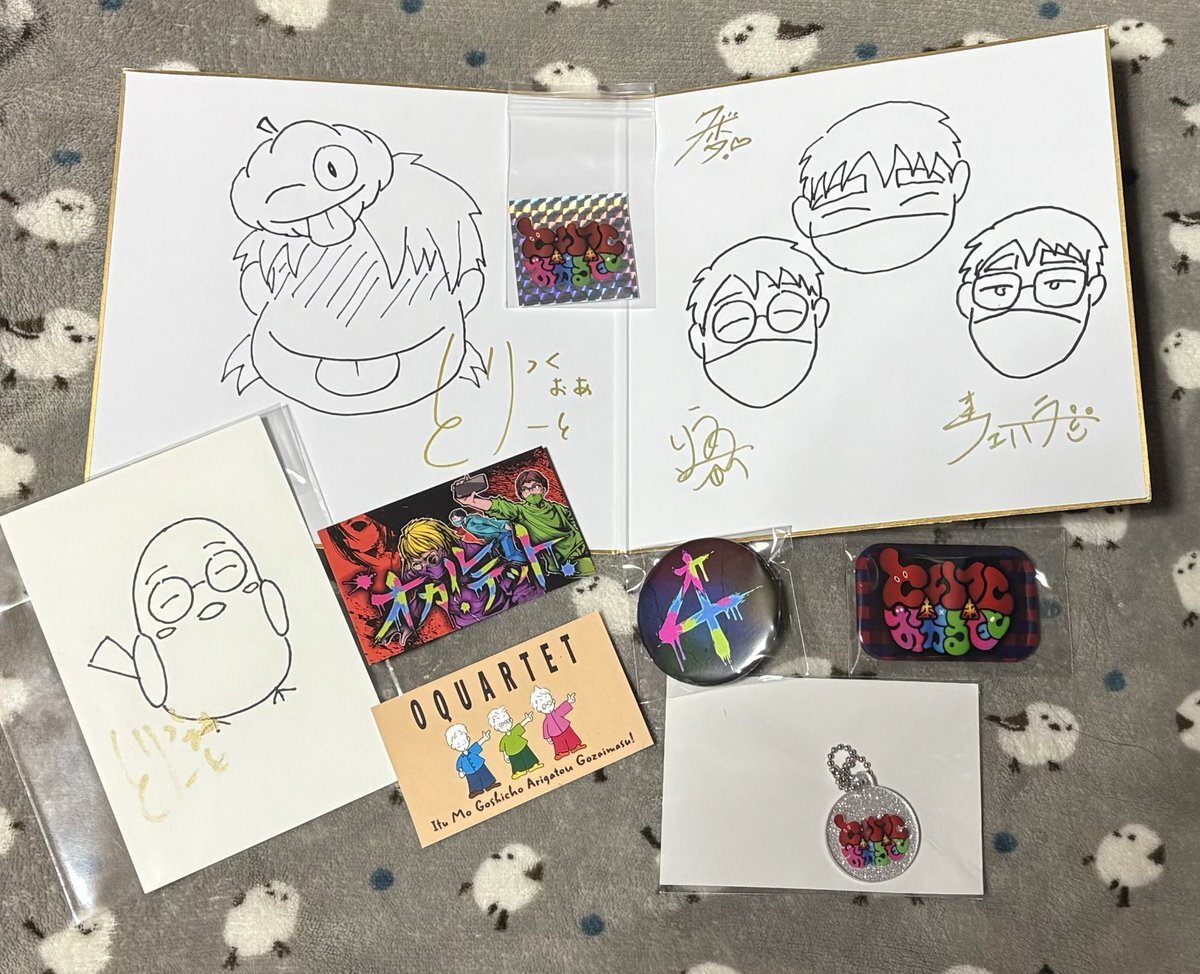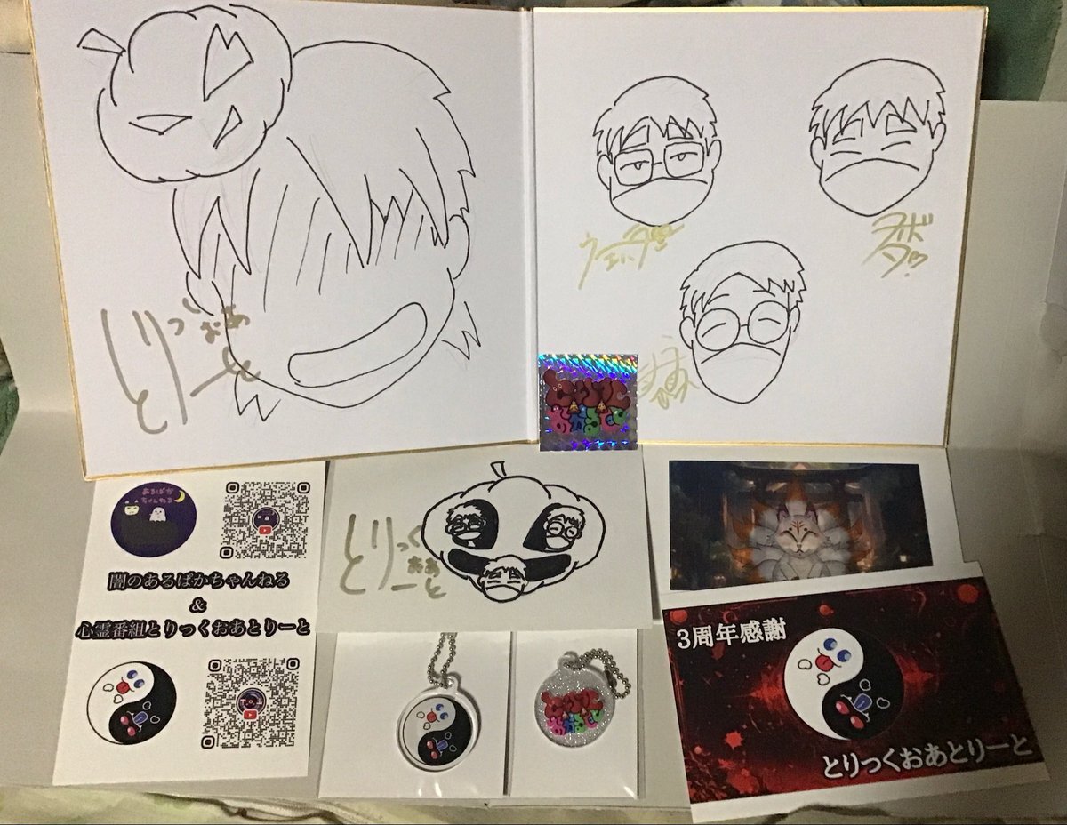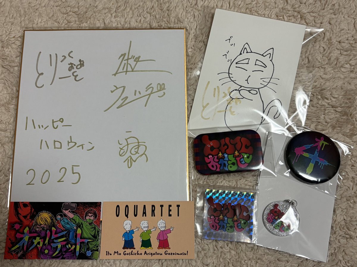 とりっくおあとりーとさんと、オカルテットさんのコラボでのプレゼント企画で当選しました〜👍🎁 初めての当選でした❣️ ありがとうございました🙇♀️ 皆さんのサインも大切にします😄 #とりっくおあとりーと #オカルテット #コーノ #ウエハラ #クボタ pic.x.com/TDDAcmkXBd