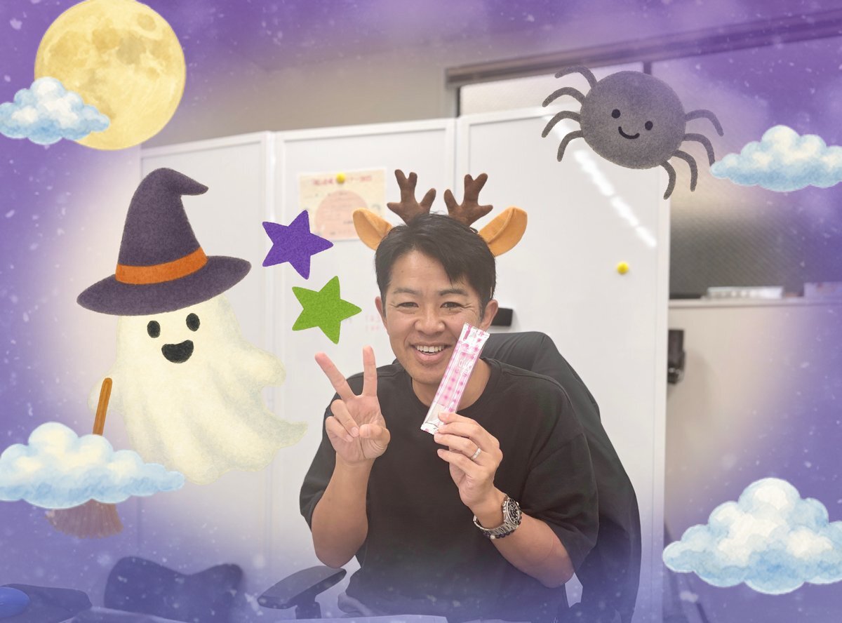 いちにち忙しく やっと帰社した代表も「とりっくおあとりーと♪」でお菓子をゲット✨ご満悦~♪ お疲れ様でした!!💛🎃💜✨ #ハロウィン #お菓子 #とりっくおあとりーと pic.x.com/dWiRAGZ2cJ