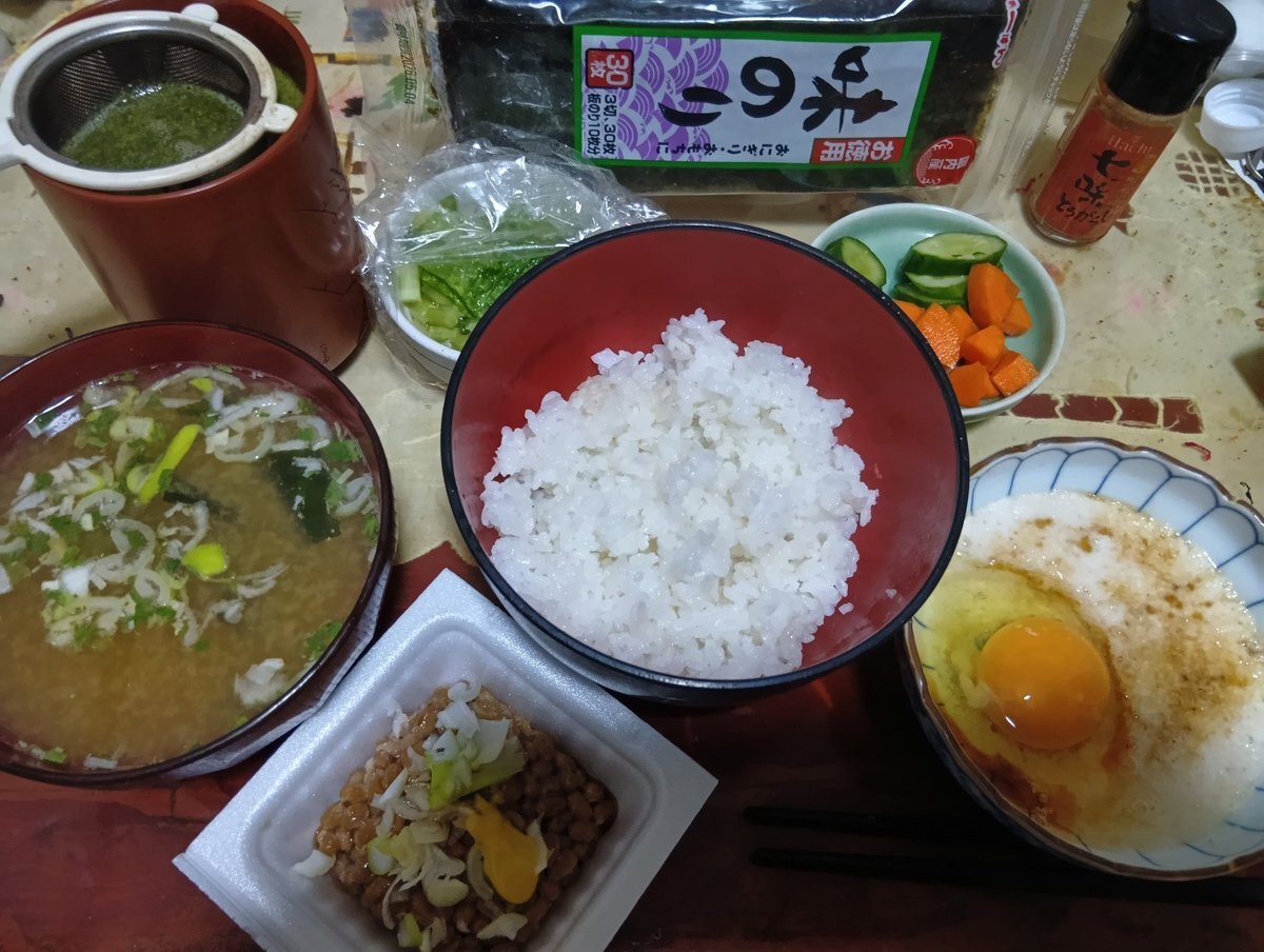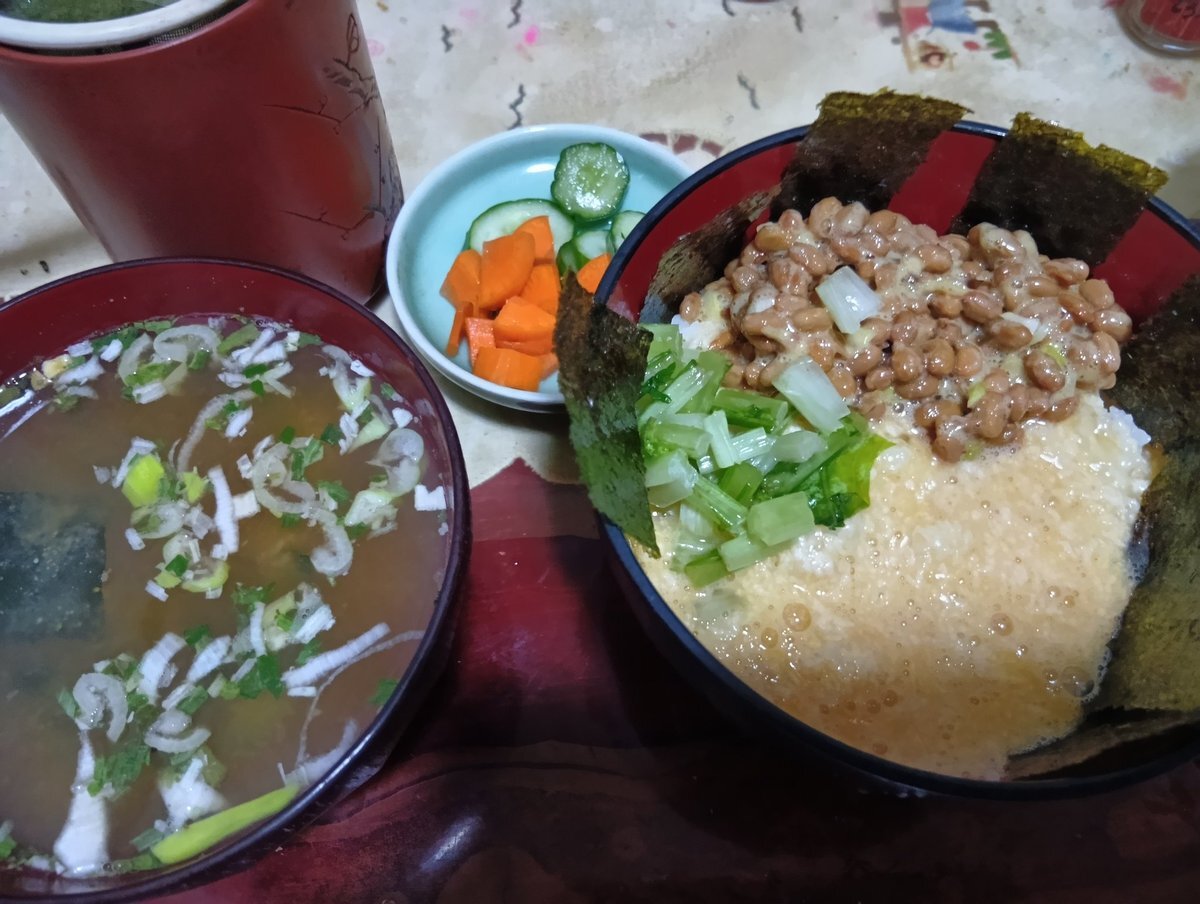 #夕飯 #とろろ飯 山芋 卵 納豆 蕪白だし漬 海苔  ネギ からし  きゅうり人参白だし漬け  味噌汁  お茶  #丼物 #自炊 #お腹ペコリン部 #おうちごはん pic.x.com/QKdhQQ17eR