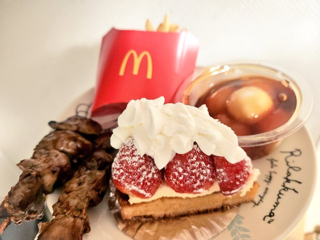 ケーキ、多分同じお店と思うんだけどミニホールは売り切れてた 同じ感じのやつを買ってお祝い! レバー、冷やしみたらし団子、マックのポテトを添えて きよとろ、お誕生日おめでとう!! 最高の1日でした!!! #とろーみん #とろーみんといっしょ pic.x.com/Rca5W2ST2B
