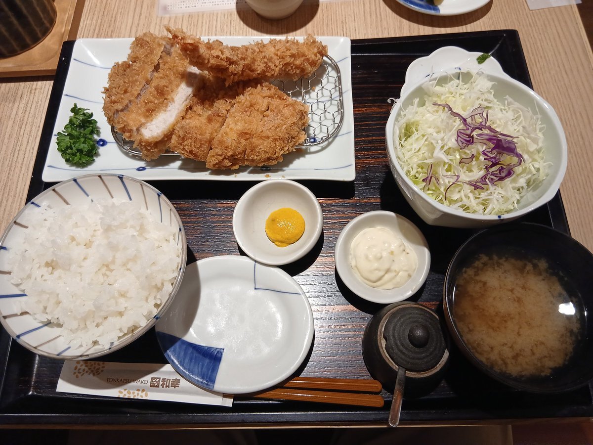 お腹空いてきたのでお昼は「とんかつ和幸」というお店でいただく事にしました🍚🥢😋ロースかつとチーズ入りささみかつ頼みましたが、とても美味しかったです😆 #とんかつ和幸 pic.x.com/y2Zk38xDUO