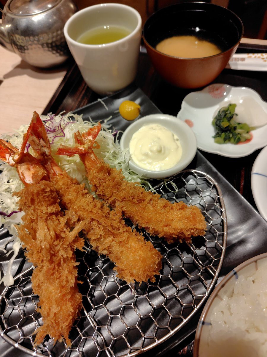 お天気に恵まれた関東☀ 過ごしやすかったーです😀 帰りに足に🍚🍴頂きまーす❣️ 本日も皆様、お疲れ様です🍀 #とんかつ和幸 #海老フライ pic.x.com/nehmn6EcYY