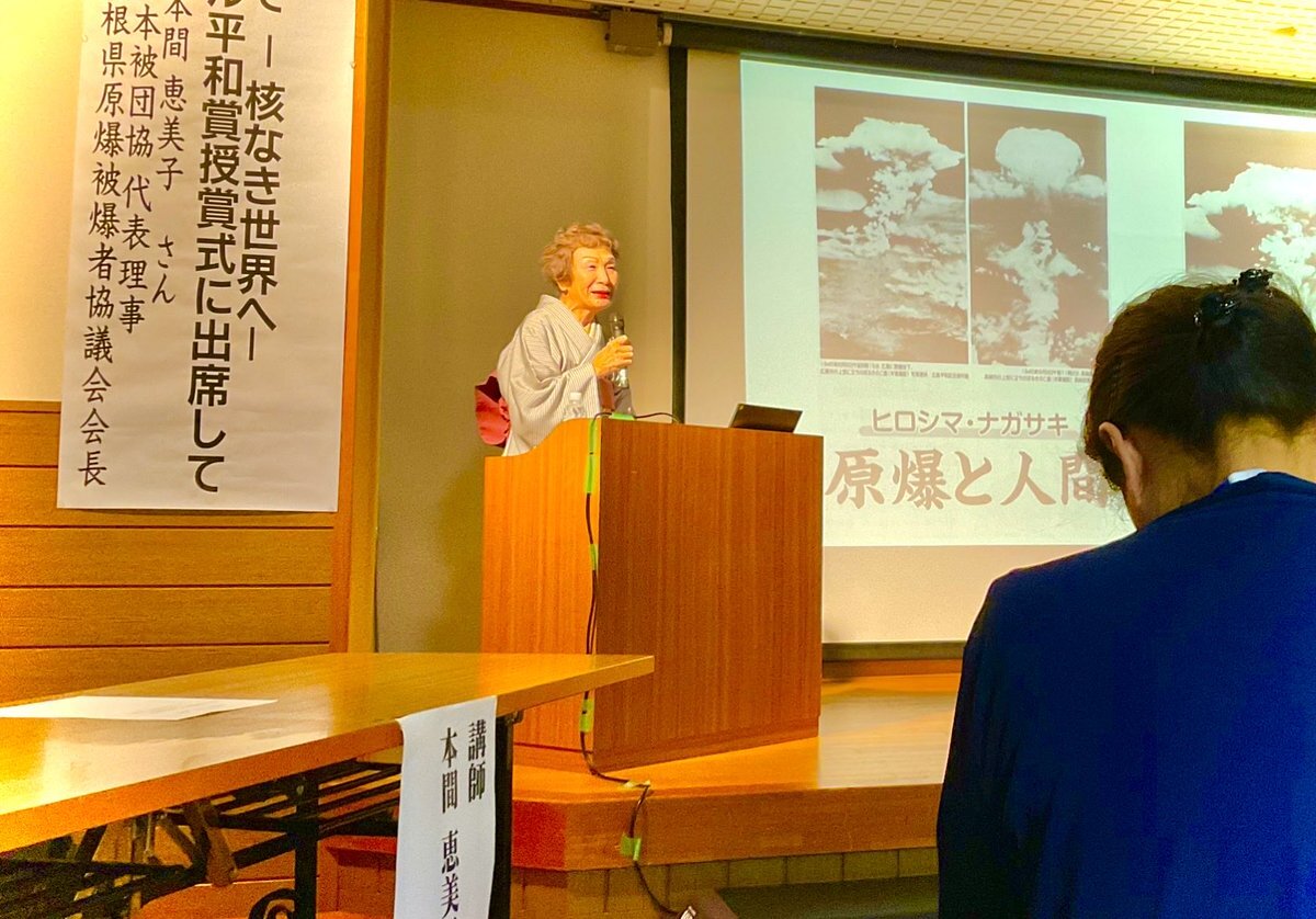 会ってきました講演会 会いたかったです 「ワンボイス」「ワンステップ」 原爆を語る。 1番心に響いたのは「89歳の夫を家に残して講演に出かける」 #本間恵美子さん #ノーベル平和賞を受賞 #日本被団協の代表理事 #県原爆被爆者協議会会長講演会 お隣りの「加納山佐屋」で昼食🥙 #とんかつ定食 pic.x.com/1uhqPeWUWP