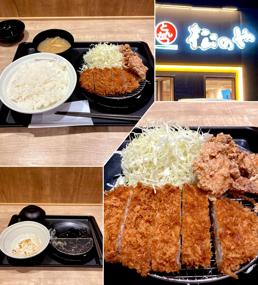 夜飯は松のや鶴岡店さんで ロースかつ&唐揚げの定食😋 夜もラーメンだとアレなので 一旦ご飯定食をはさみます😅 ボリューミーな定食😳 ご飯は小も中も大も特大も同じ値段🤩 しかもおかわりokらしいです👏 ご飯大で満腹満腹でした🤤 ご馳走様です🙏 #とんかつ定食 #唐揚げ定食 #松のや pic.x.com/hfcoPNgOsA